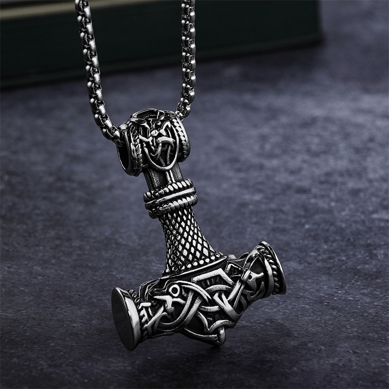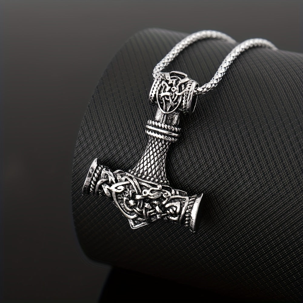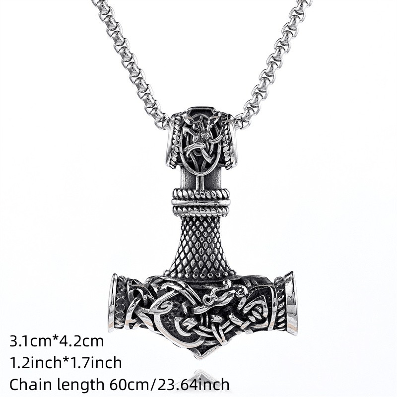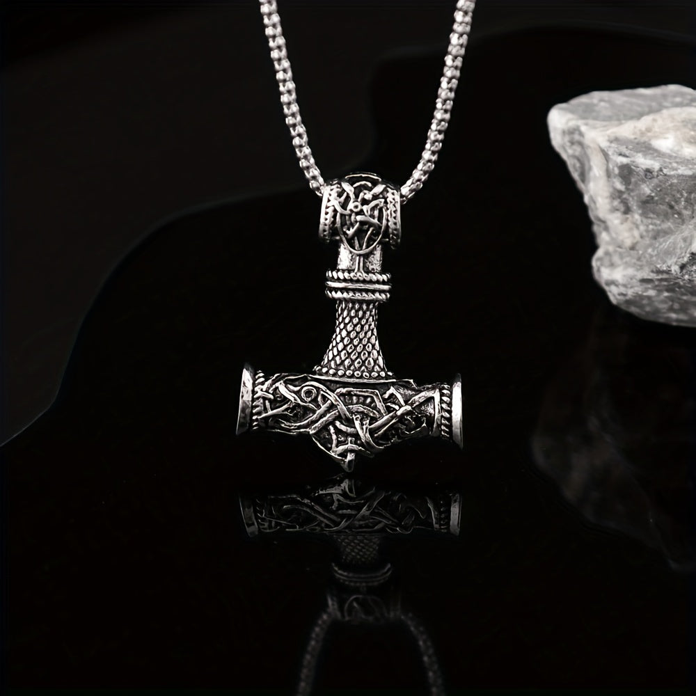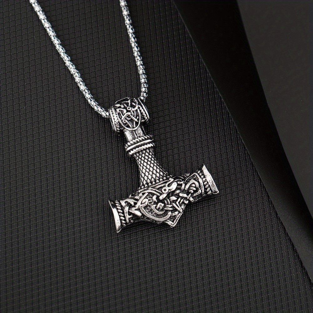 Embrace your inner Viking with this vintage-style rune hammer pendant necklace. Crafted with a punk aesthetic, this amulet necklace is perfect for men who want to showcase their bold style.