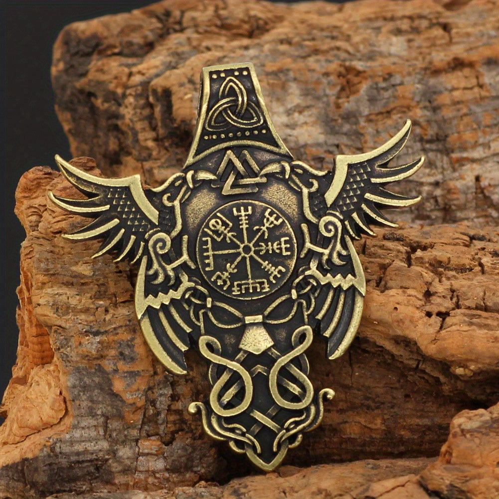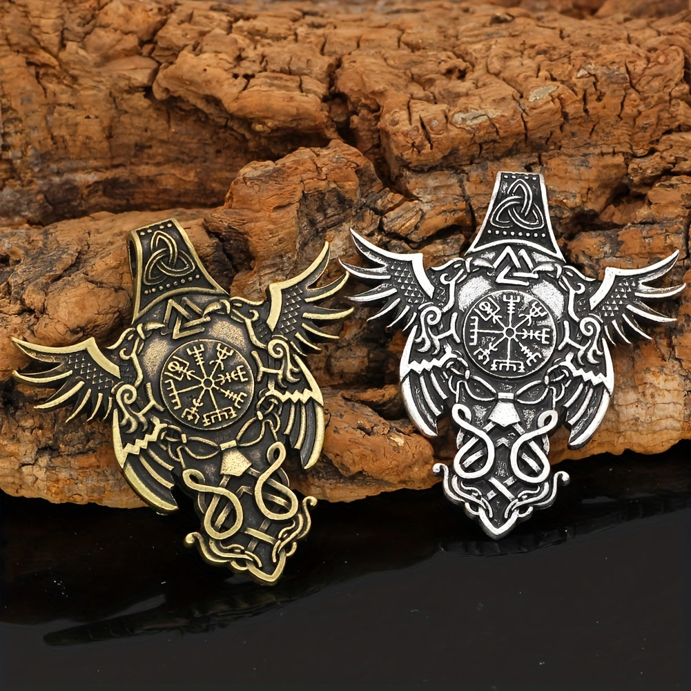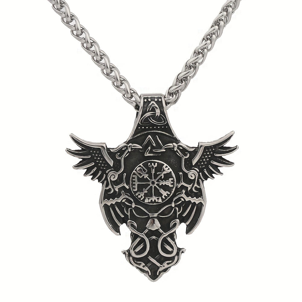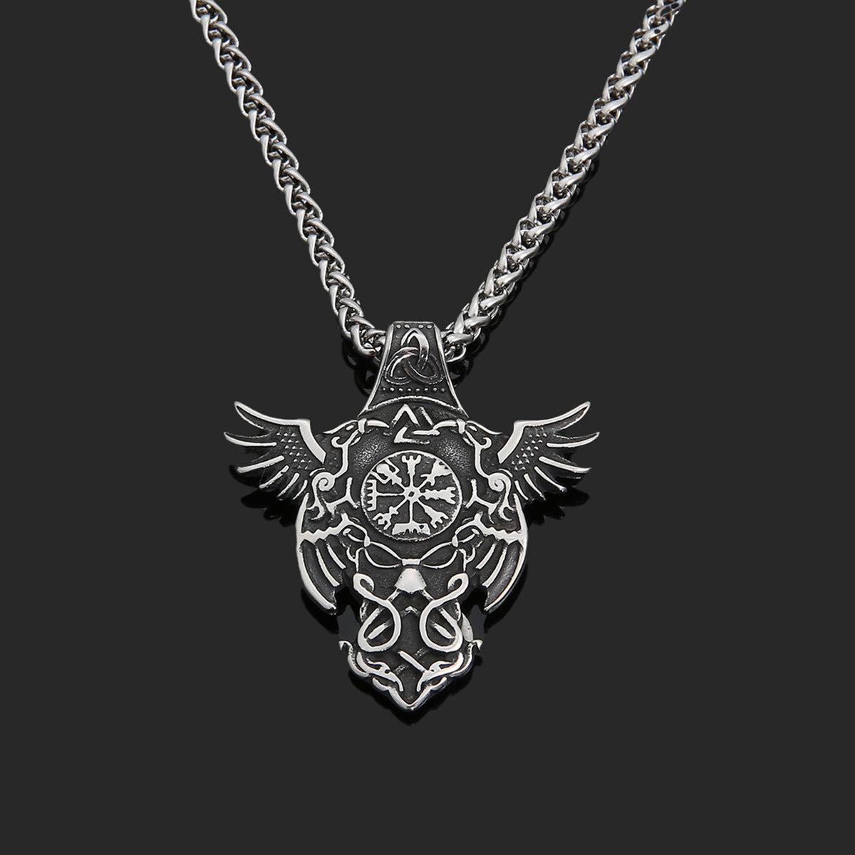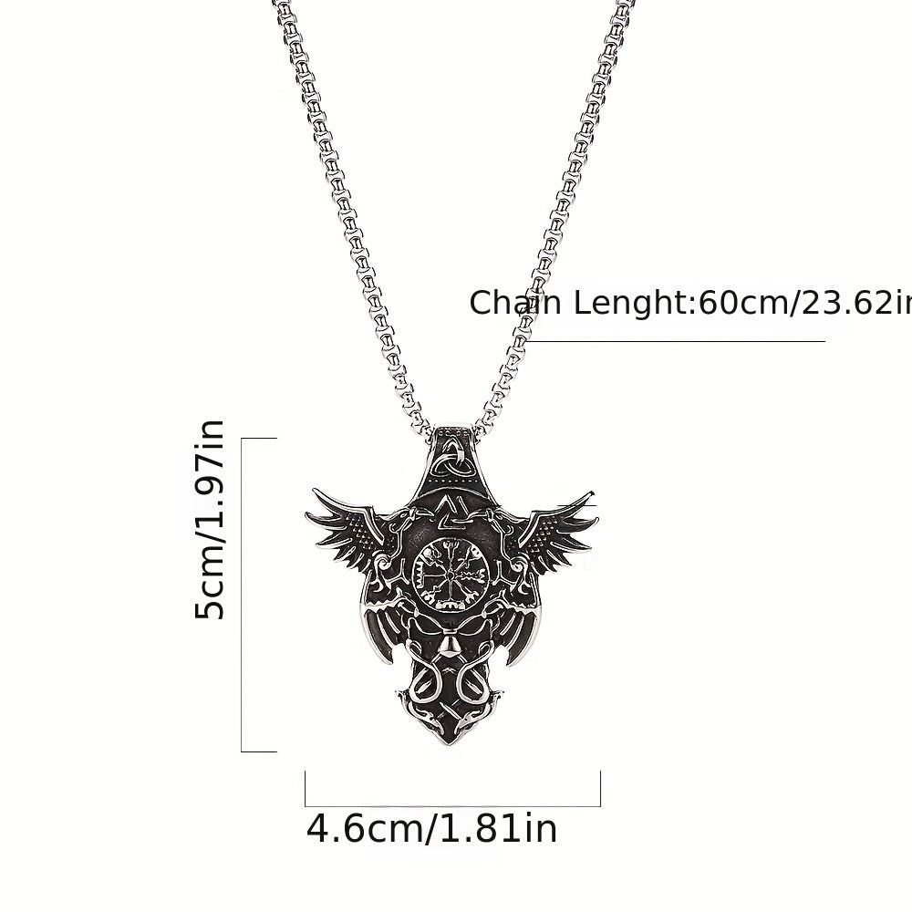 This stainless steel pendant features a Viking runes design with a triquetra Celtic knot and winged armor, creating a unique and stylish look.