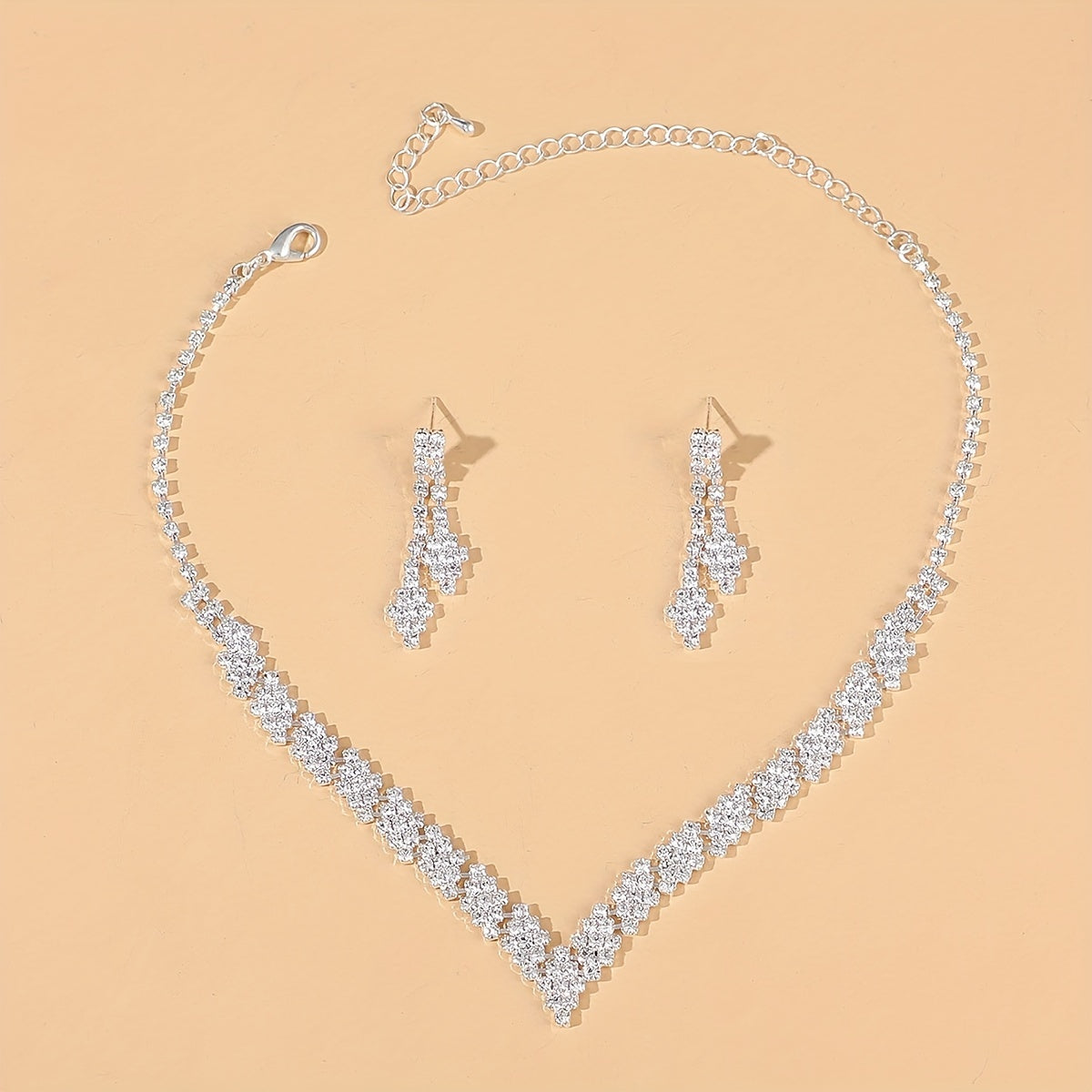 Elegant wedding jewelry set including a necklace and earrings, perfect for parties, holidays, and gifting. This set will add a touch of glamour to any outfit.