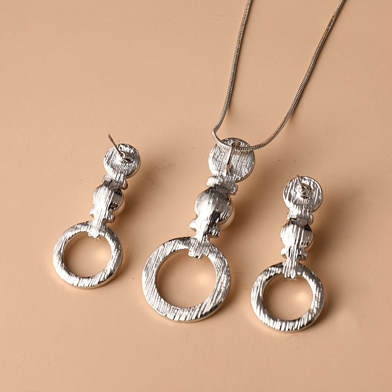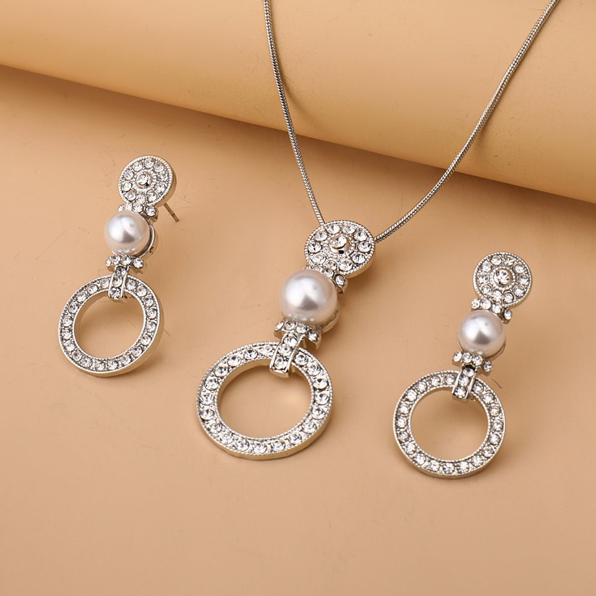 Women's Circle Ring Pearl Earrings & Necklace Set