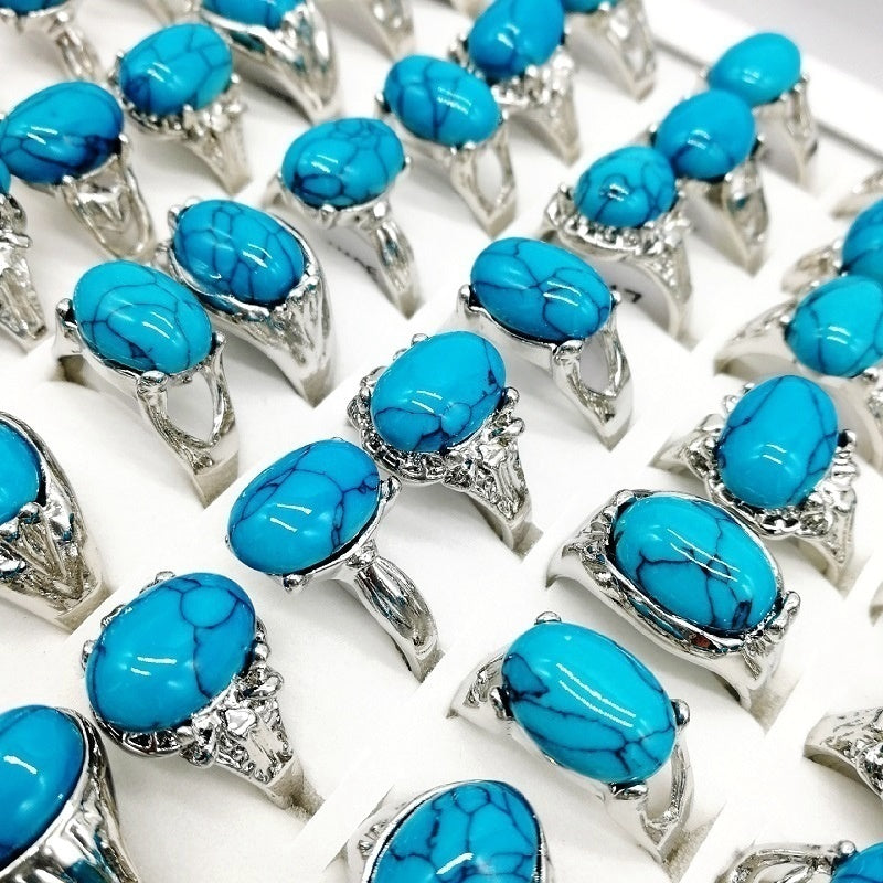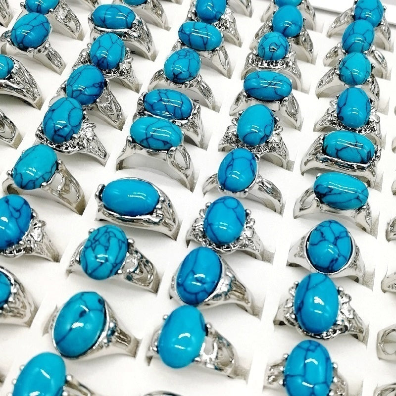 20pcs Pine Stone Rings Silvery Charm Jewelry Accessories Gift
