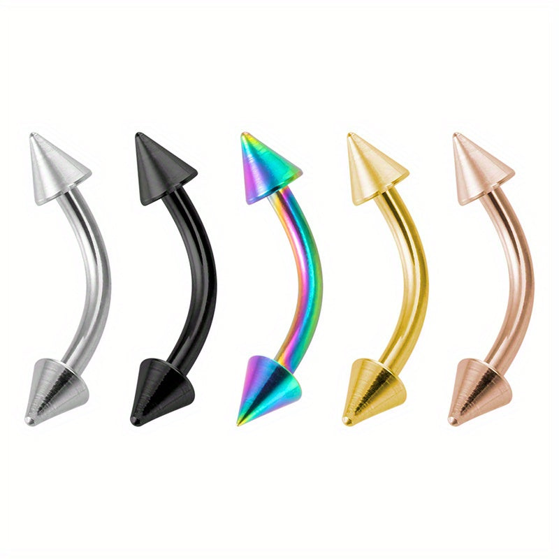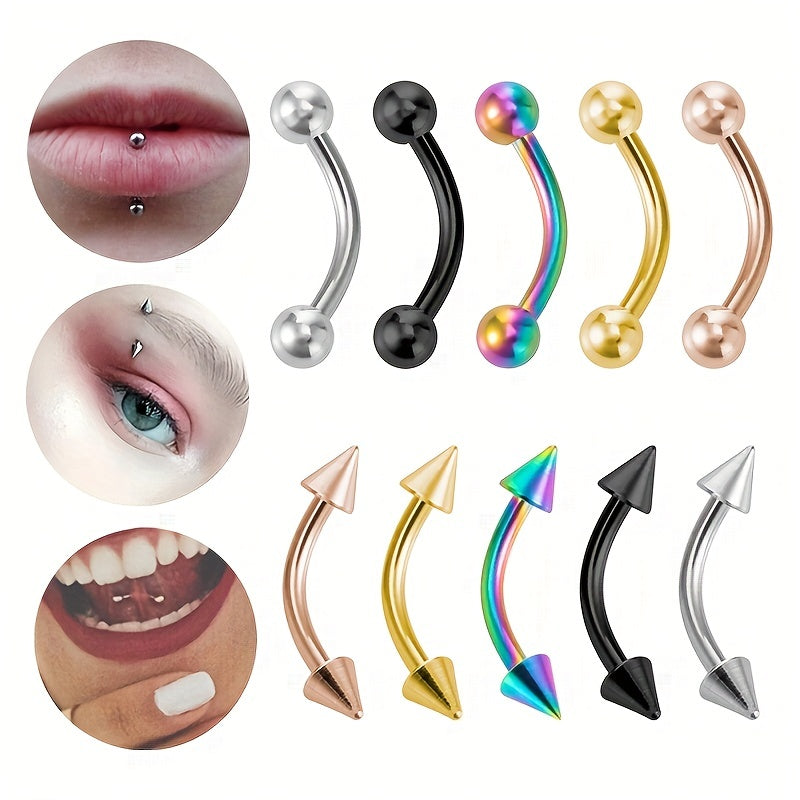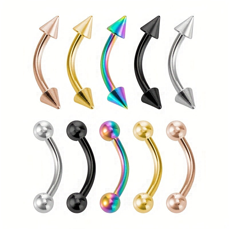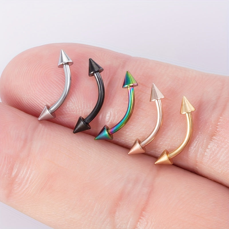This set includes 5 curved barbell rings made of stainless steel, suitable for eyebrow, lip, tongue, and navel piercings.