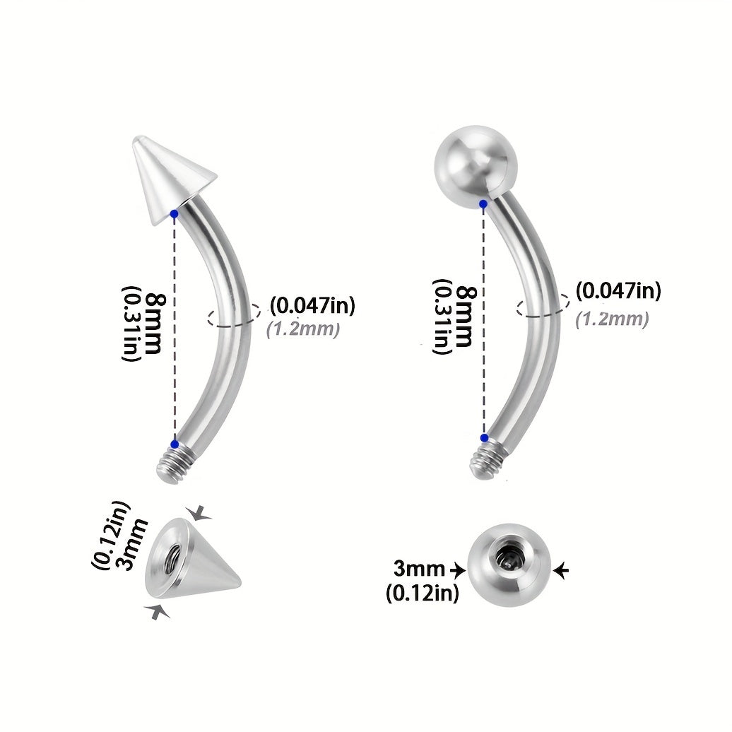 • Suitable for eyebrow, lip, tongue, and navel piercings