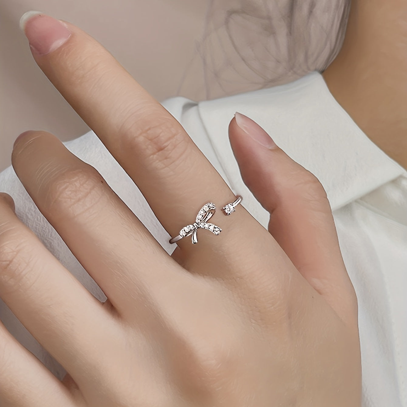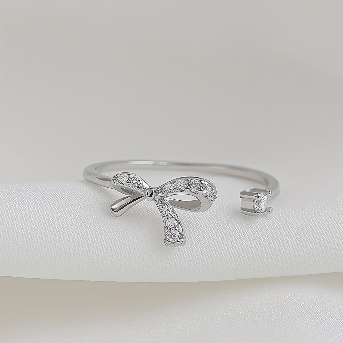Adjustable Zircon Bow Knot Ring for Daily Outfits and Parties