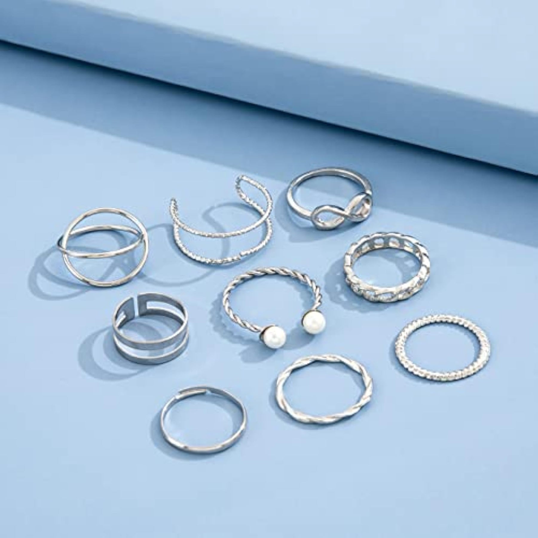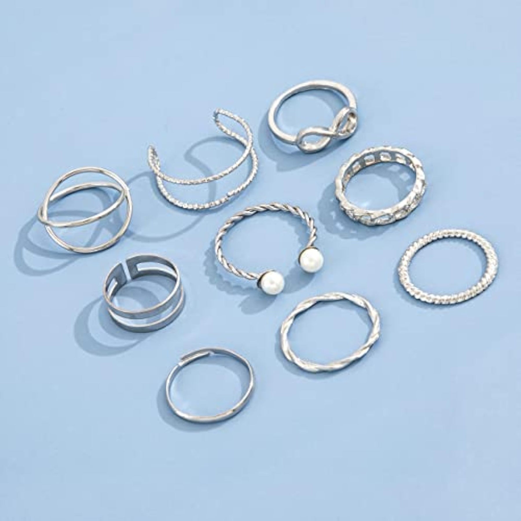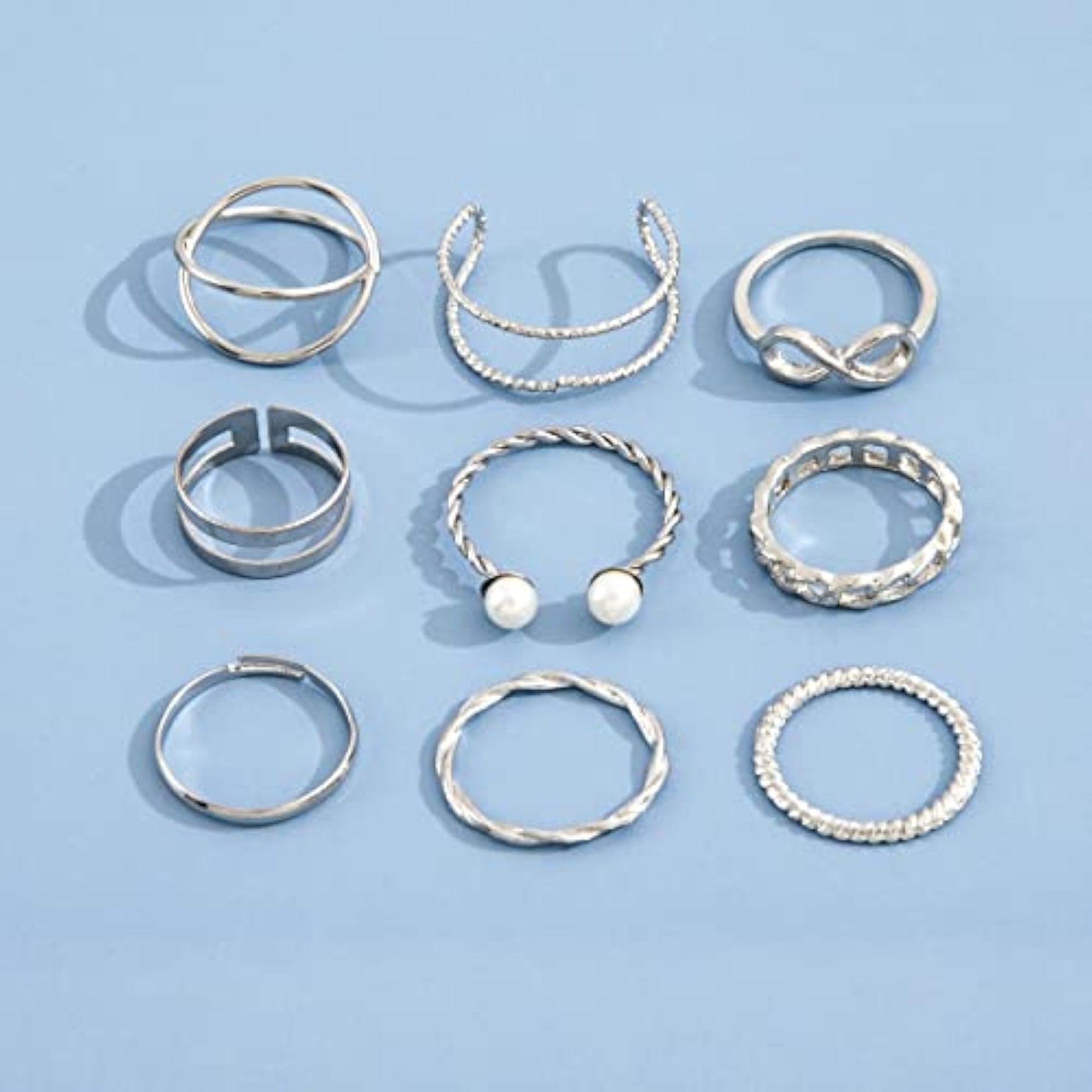 Elevate your style with this chic set of 9 boho midi finger rings. Featuring a stylish metal design, these rings are the perfect accessory for any outfit.