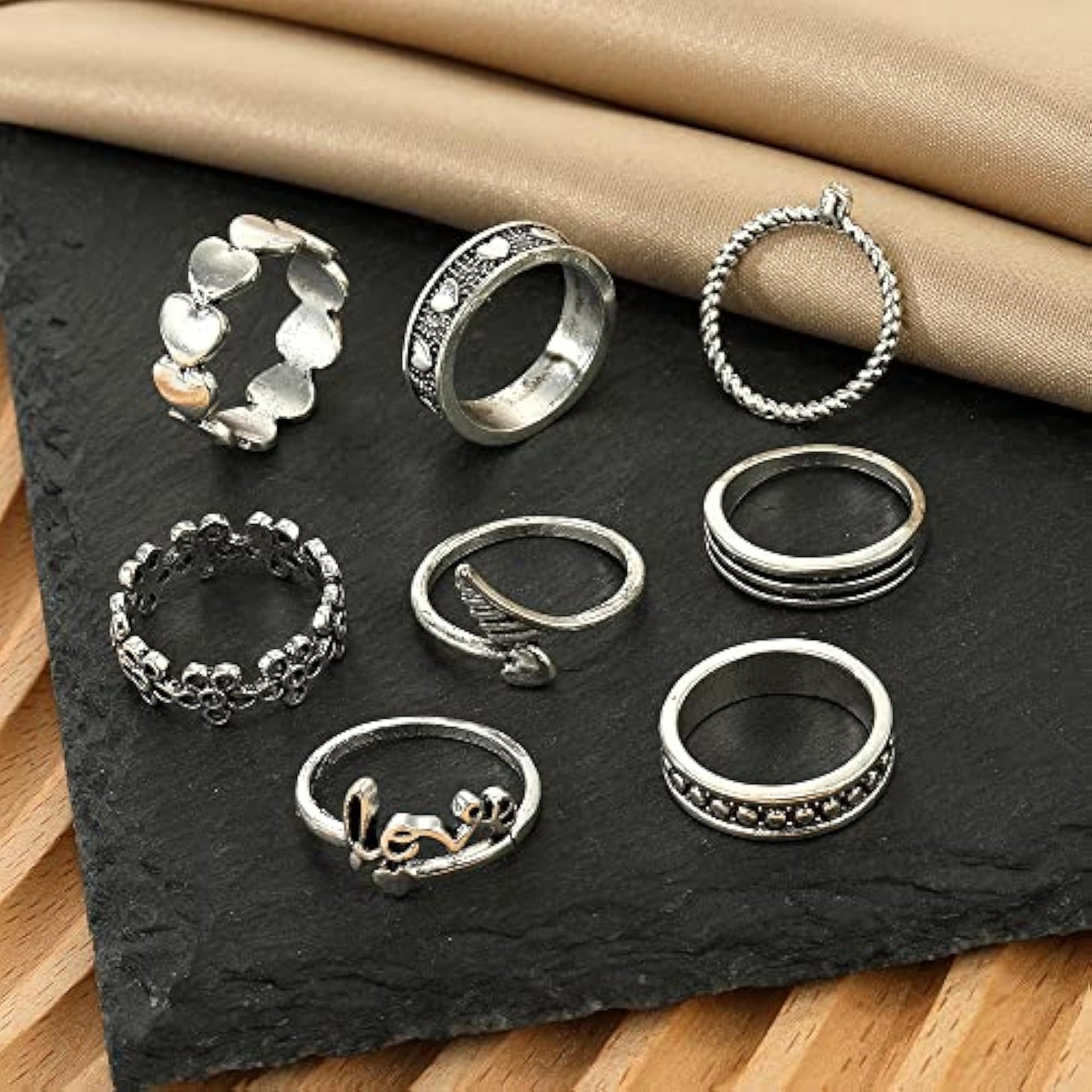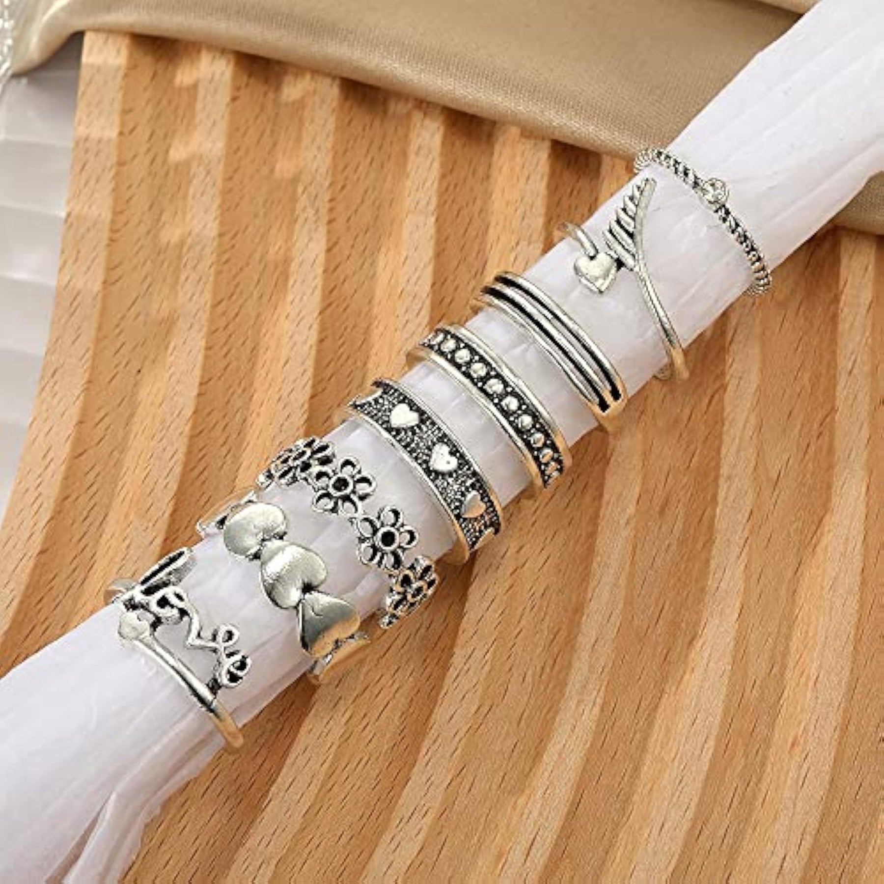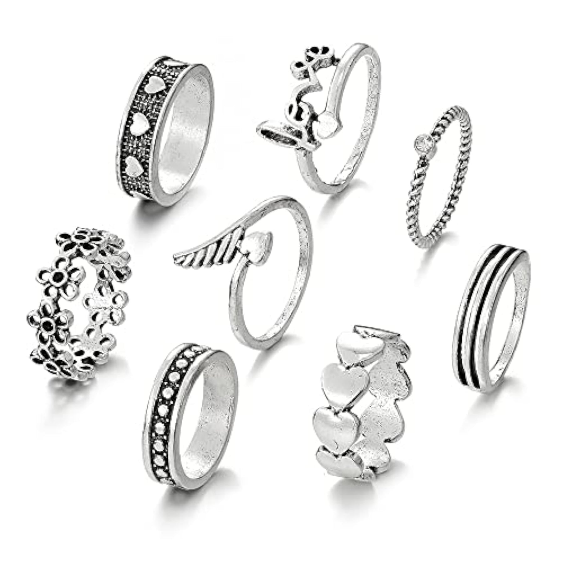 Elevate your style with this set of 8 boho midi finger rings. Made of stylish metal, these rings are perfect for adding a touch of sophistication to any outfit.