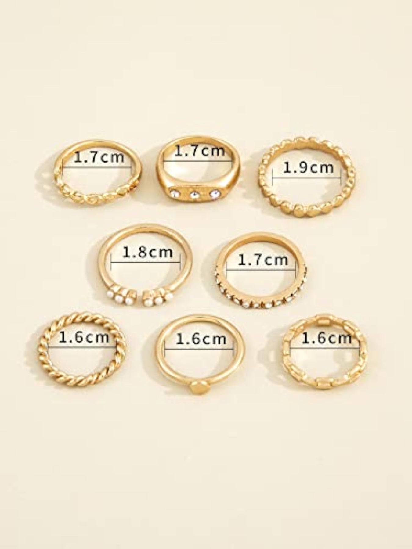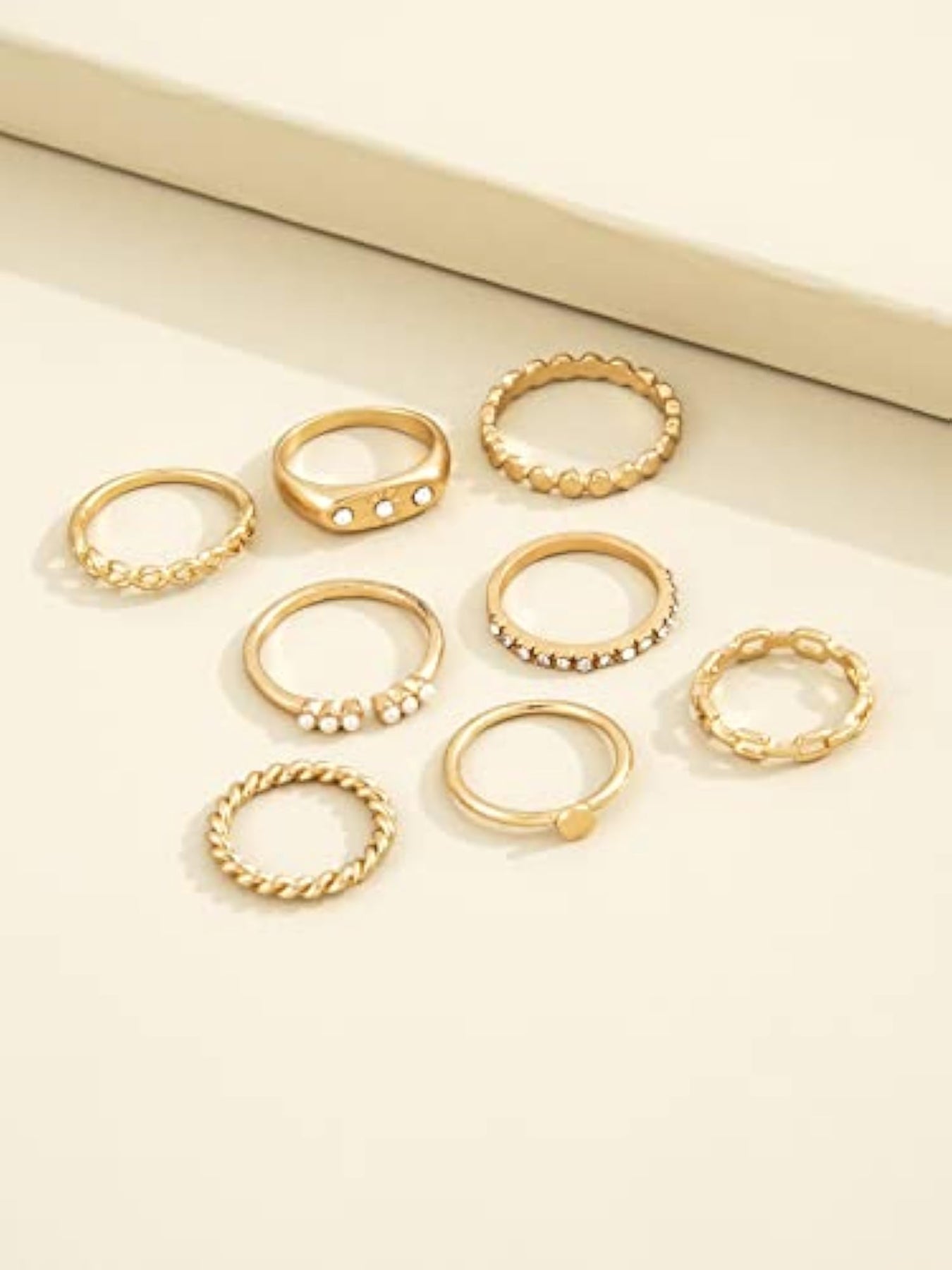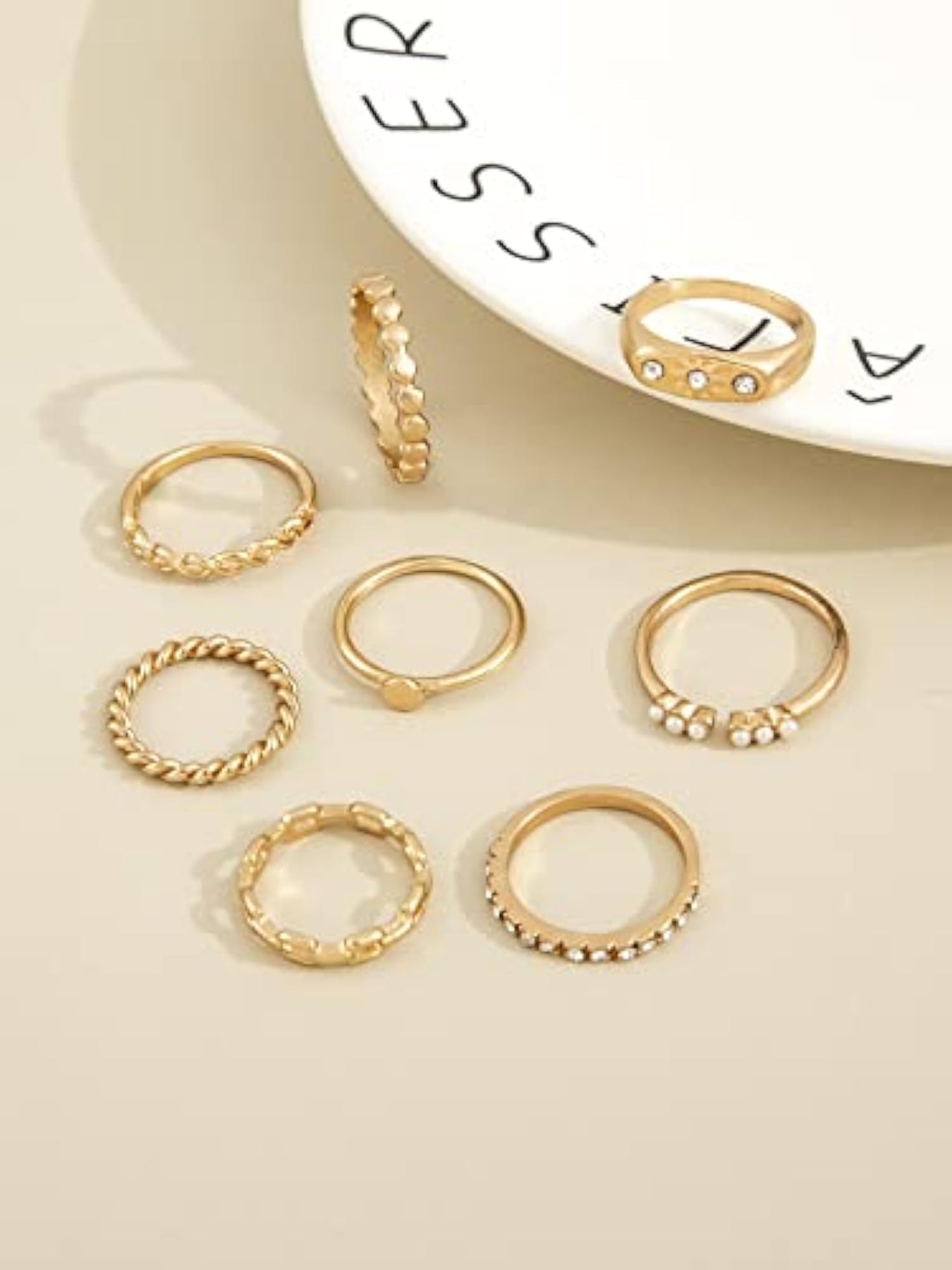 Enhance your style with this set of 8 stylish metal Boho midi finger rings. Perfect for adding a touch of bohemian charm to your look.