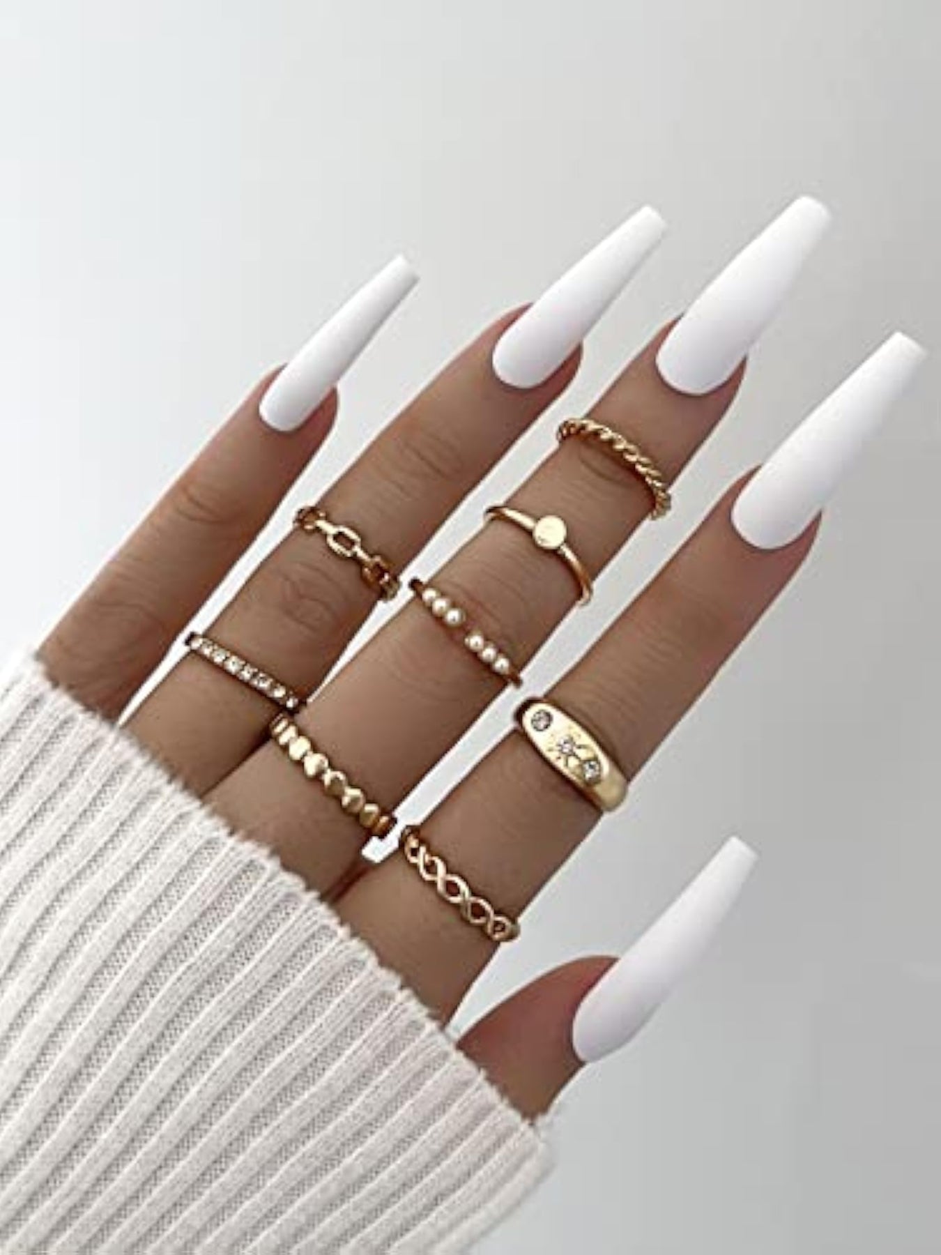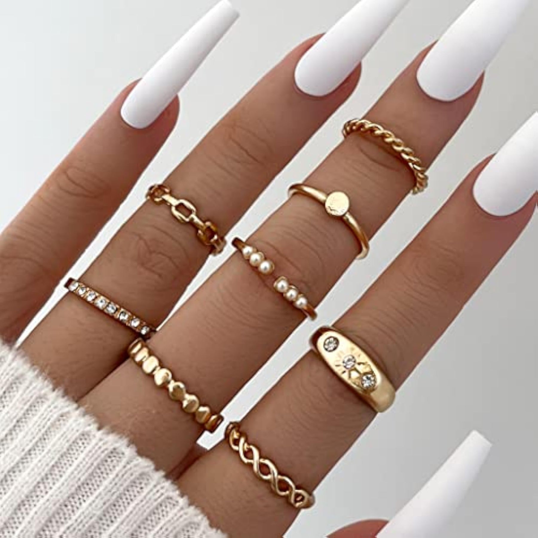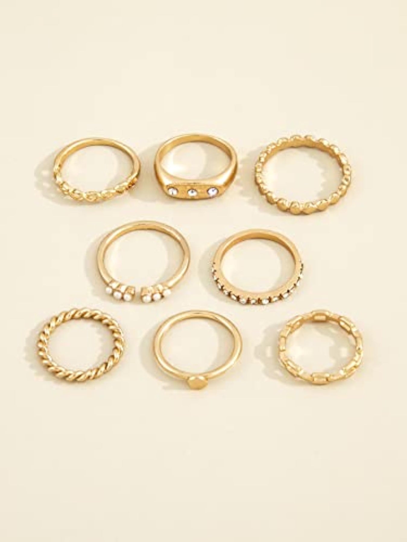 Enhance your style with this set of 8 stylish metal Boho midi finger rings. Perfect for adding a touch of bohemian charm to your look.