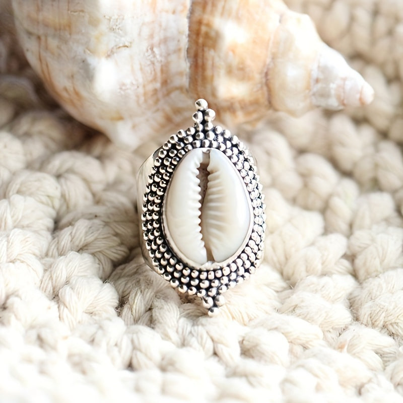 Elevate your style with this boho shell ring made of natural shells. Perfect accessory for a joyful summer look.