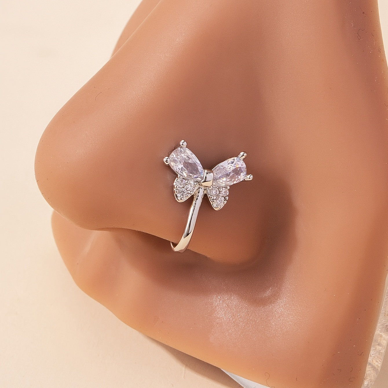 Enhance your look with this stylish nose accessory that features a beautiful butterfly design and inlaid zircon. No need for piercing!