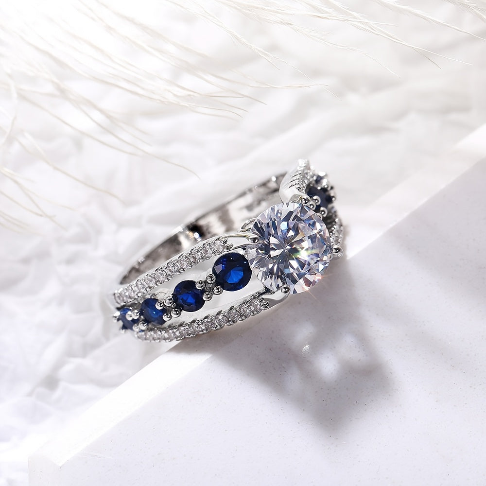 This stunning oval zircon sapphire eternity ring is perfect for weddings and parties. It is made of high-quality silver-plated material and is designed for women and girls.