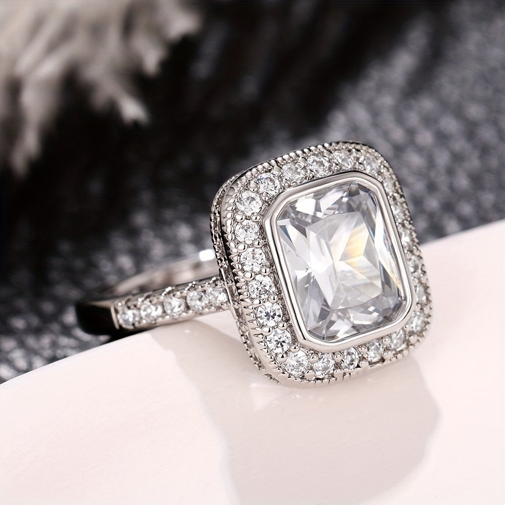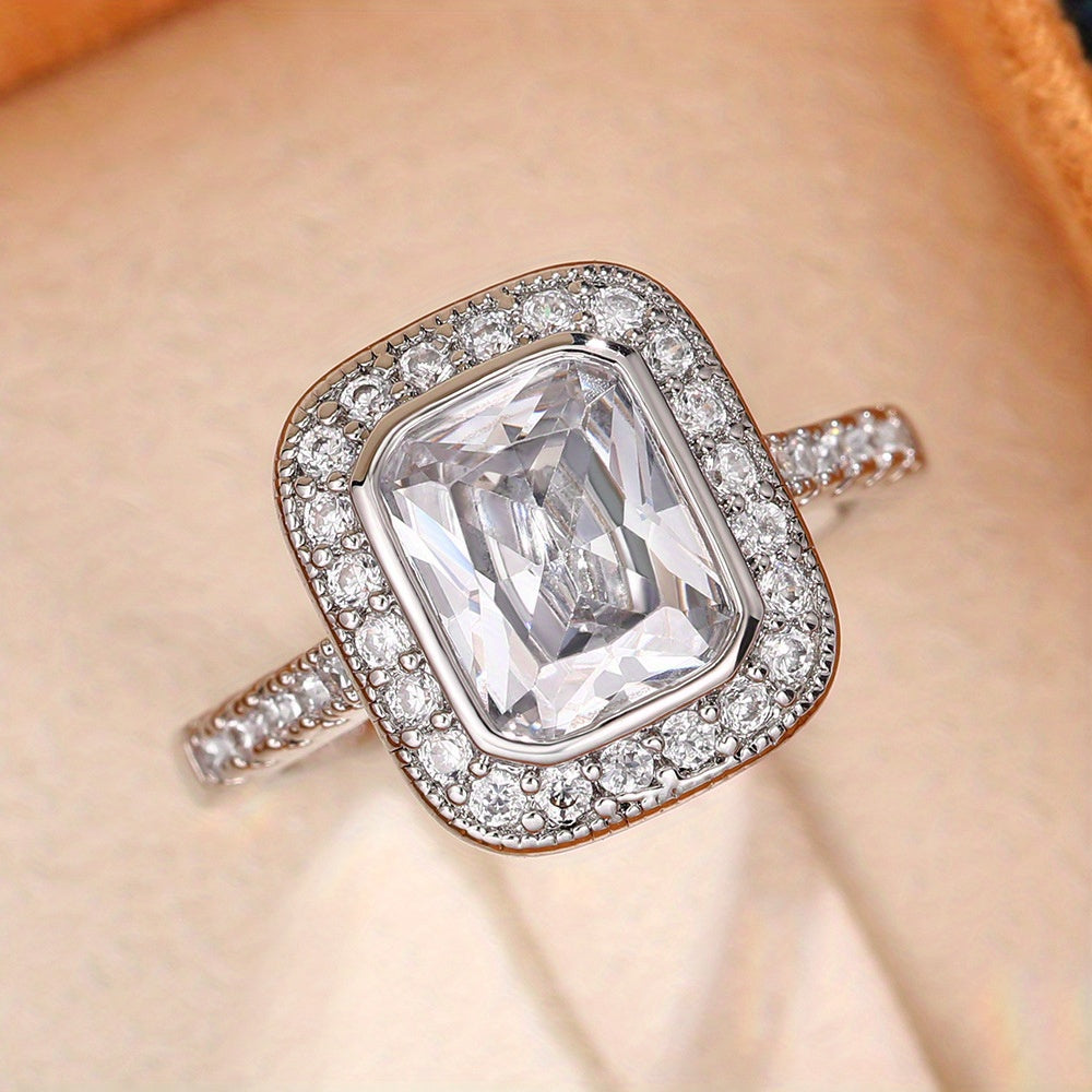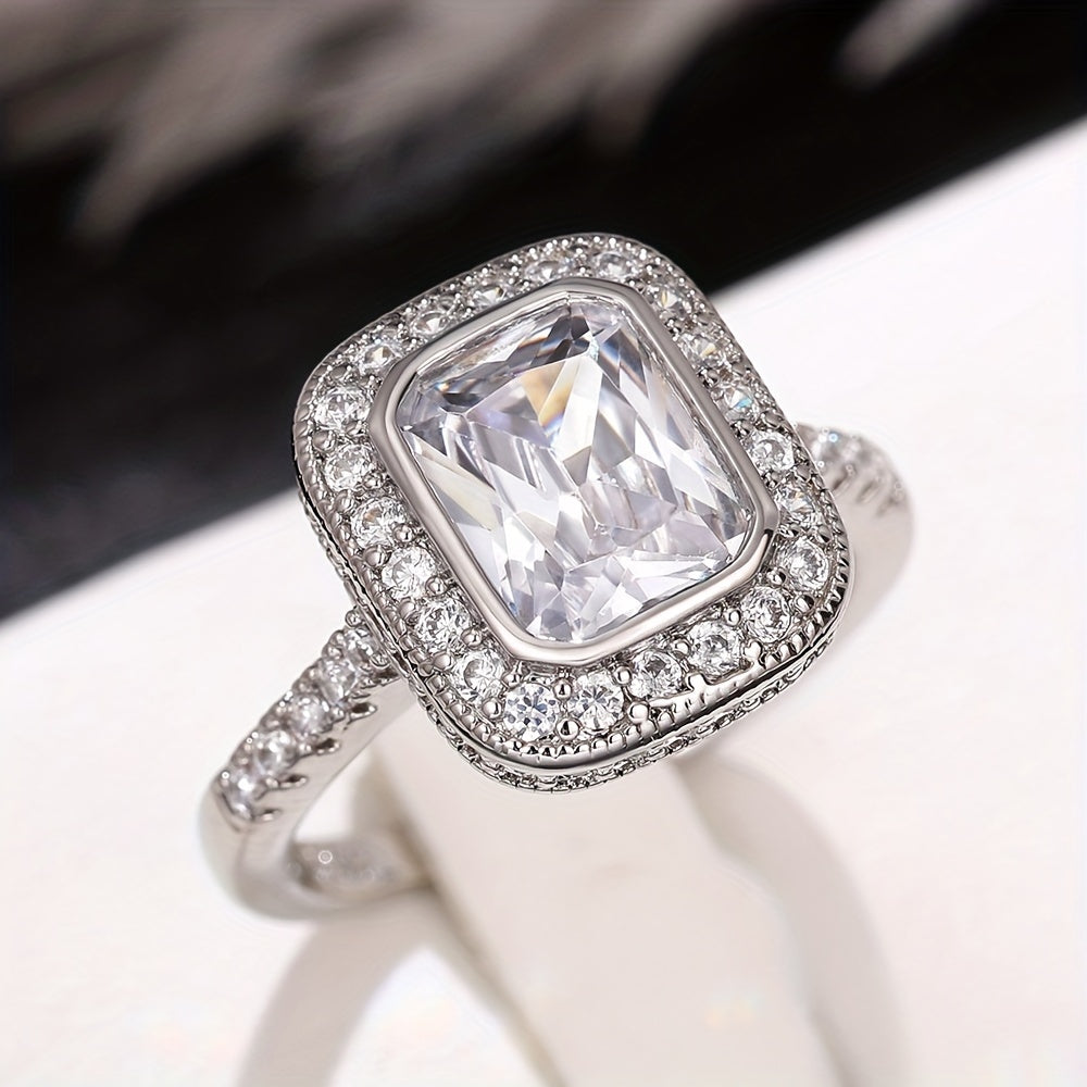 This gorgeous silver-plated promise ring features a sparkling cubic zirconia stone inlaid at the center. Perfect for engagements, weddings, or as a beautiful gift!