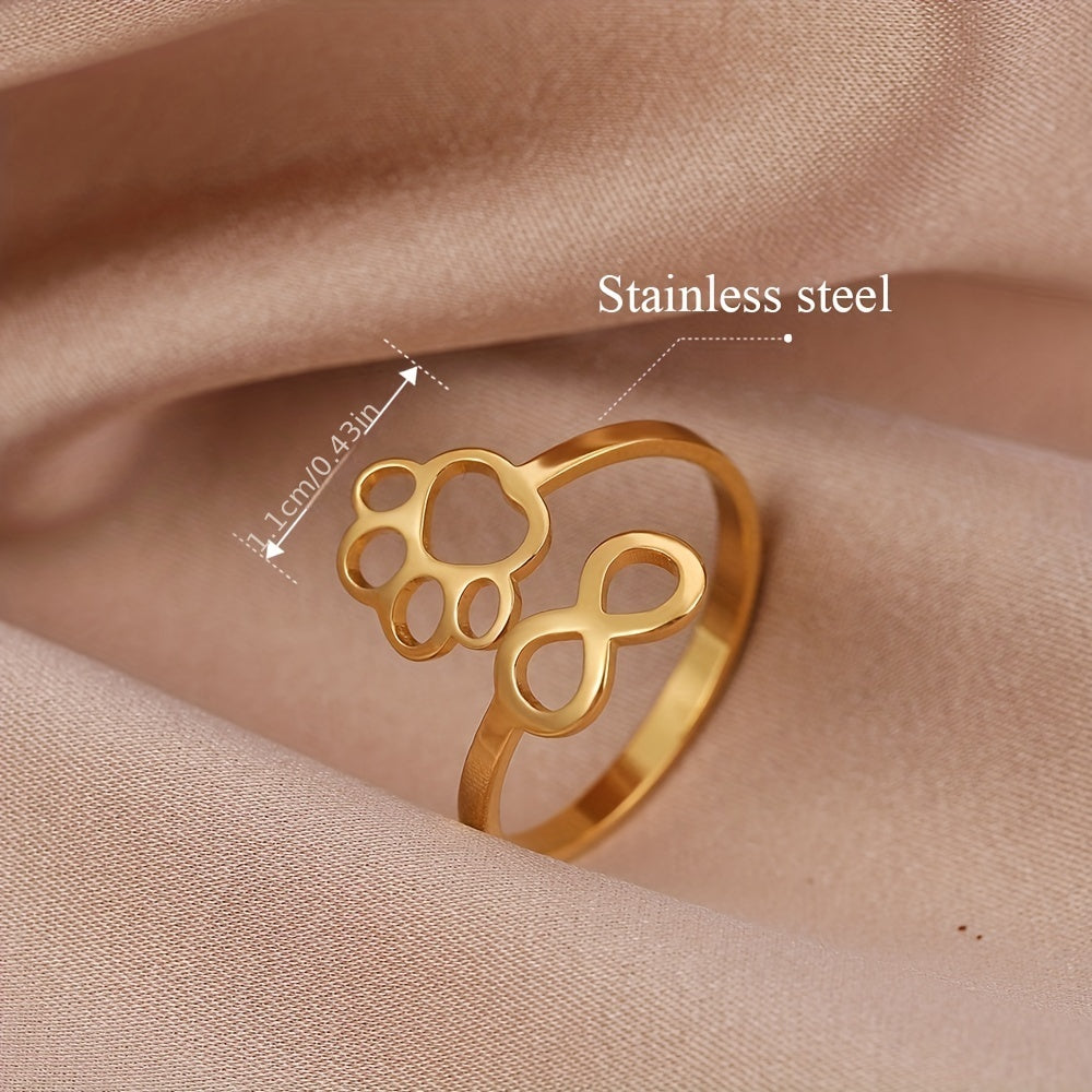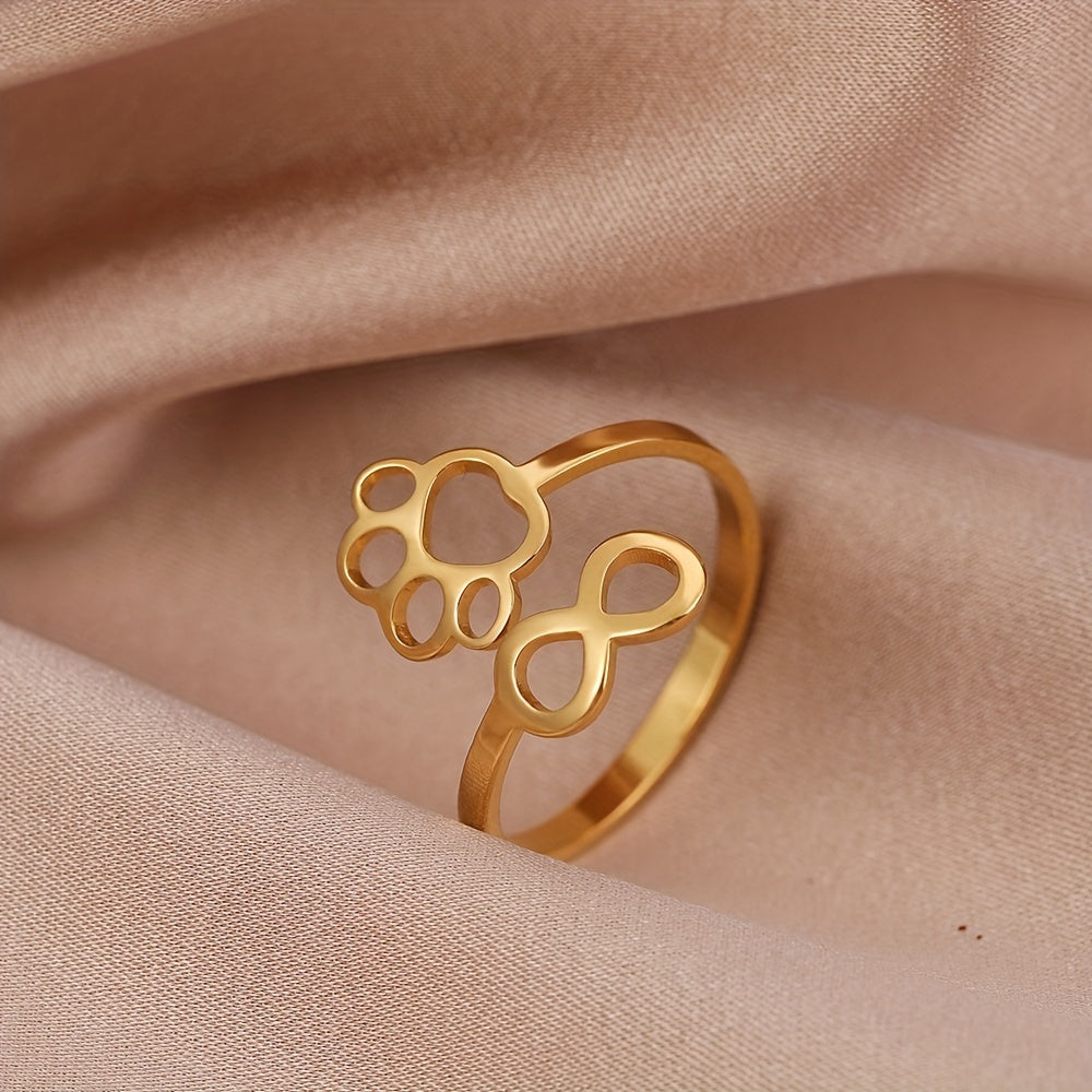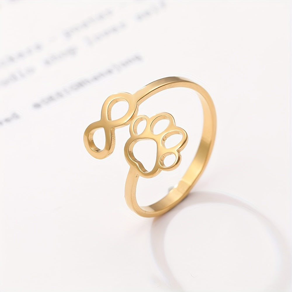 This stylish dog paw ring is plated with 18k gold, perfect for weddings, engagements, or daily decoration. It features a kpop style design and is adjustable to fit various sizes.