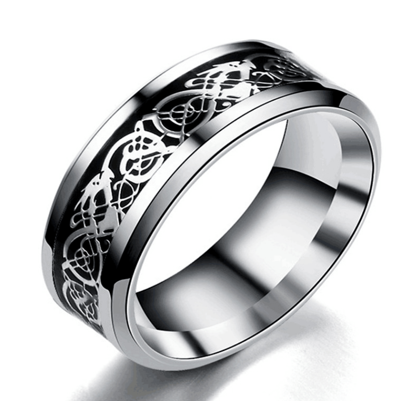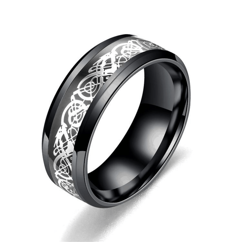 This stunning ring features a dragon pattern design crafted from titanium steel. Perfect for couples, this ring is durable and stylish.