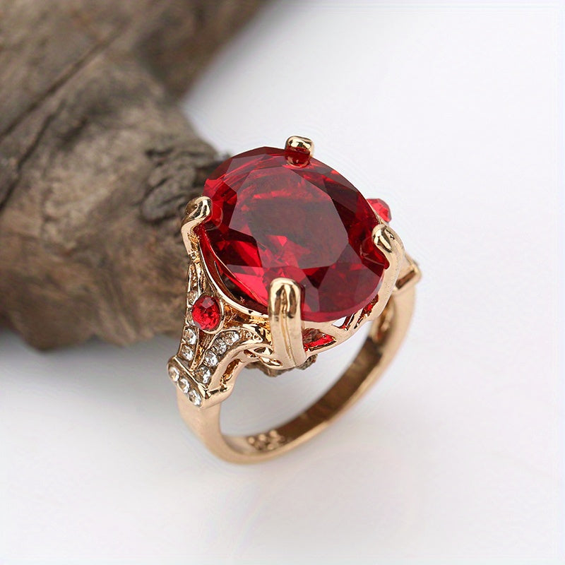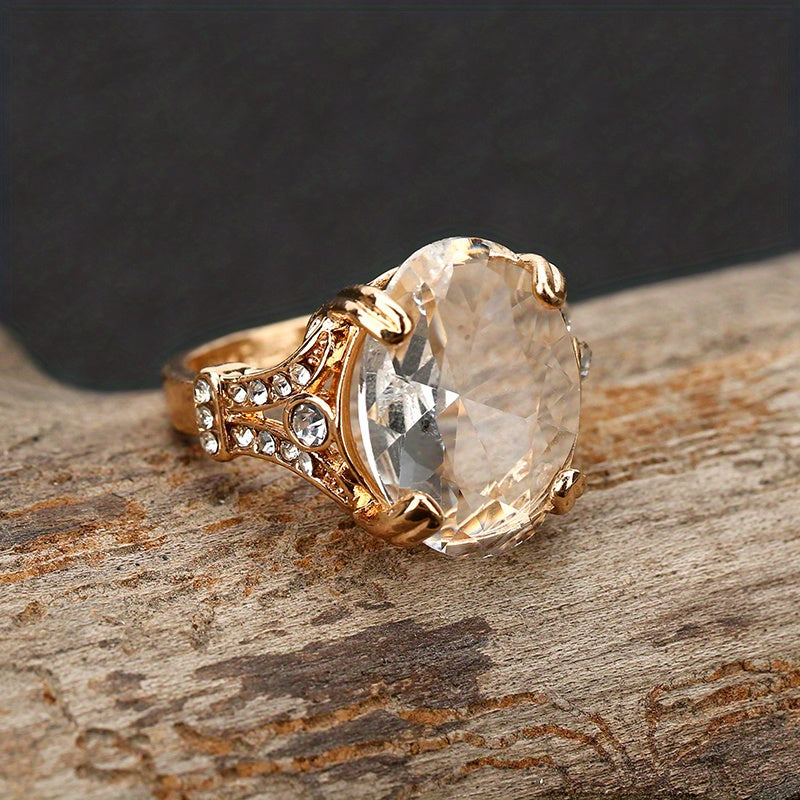 This stunning ring features an oval zircon stone set in 18K plated metal, making it a beautiful accessory for weddings or special occasions. A perfect gift for women who appreciate elegant jewelry.