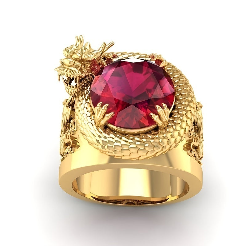Engraved Dragon Ring Punk Style Mens Jewelry