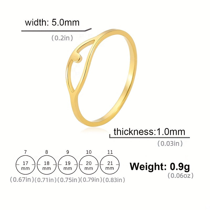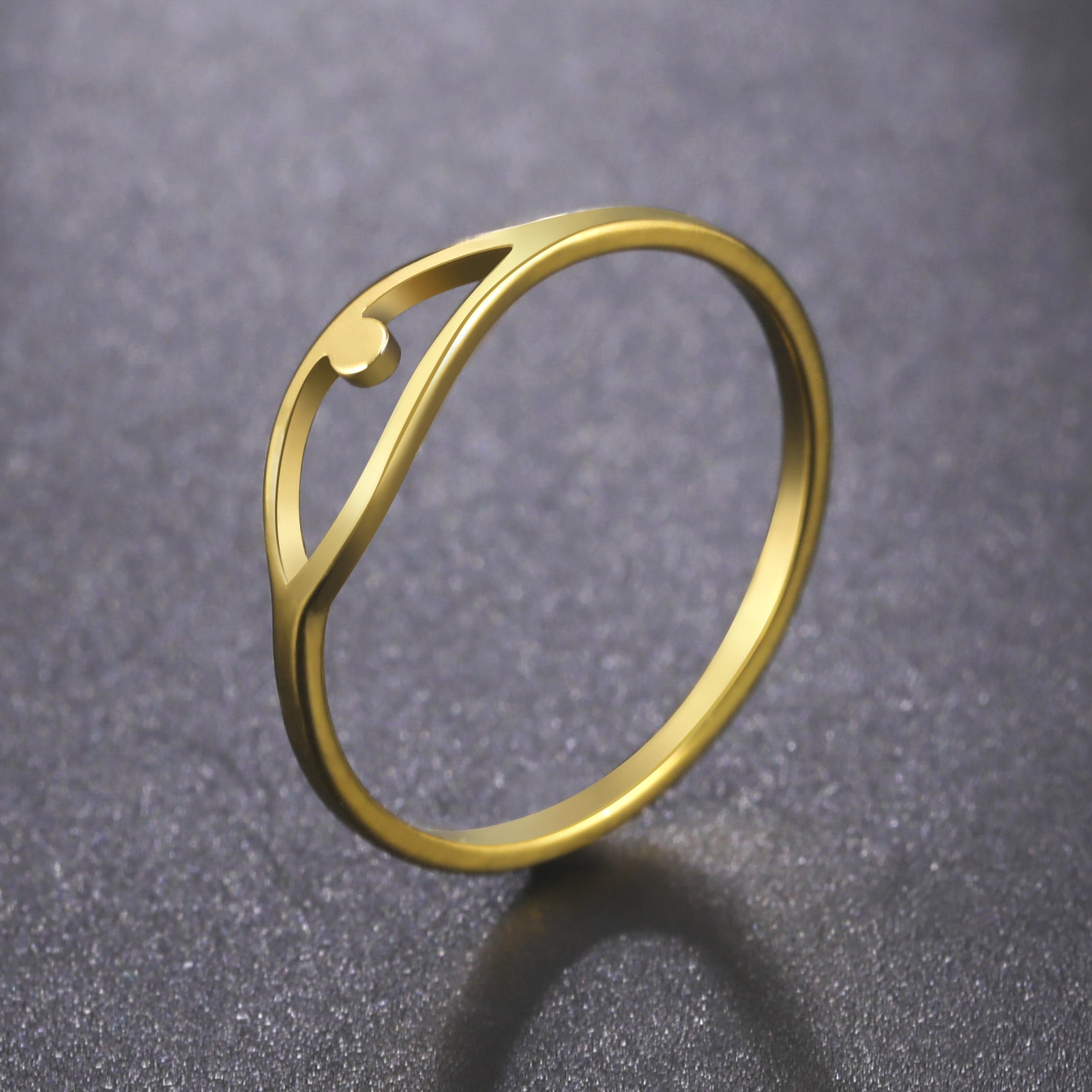 This stylish ring features a geometric eye pattern design, made of stainless steel in golden and silvery tones. Perfect for parties or as a thoughtful gift.