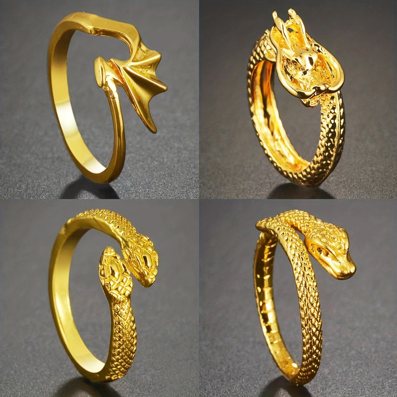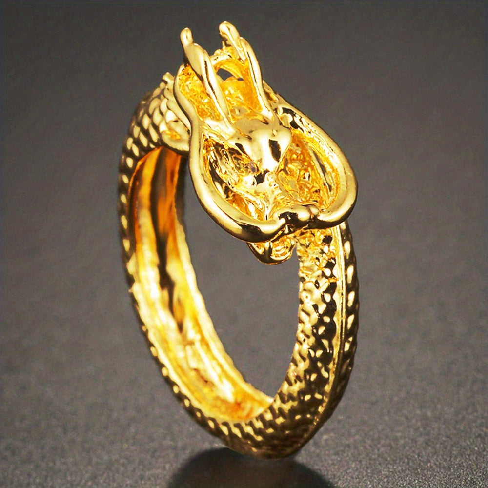 Golden Dragon Shape Retro Ring Hip hop Chinese Dragon Element Ring Adjustable