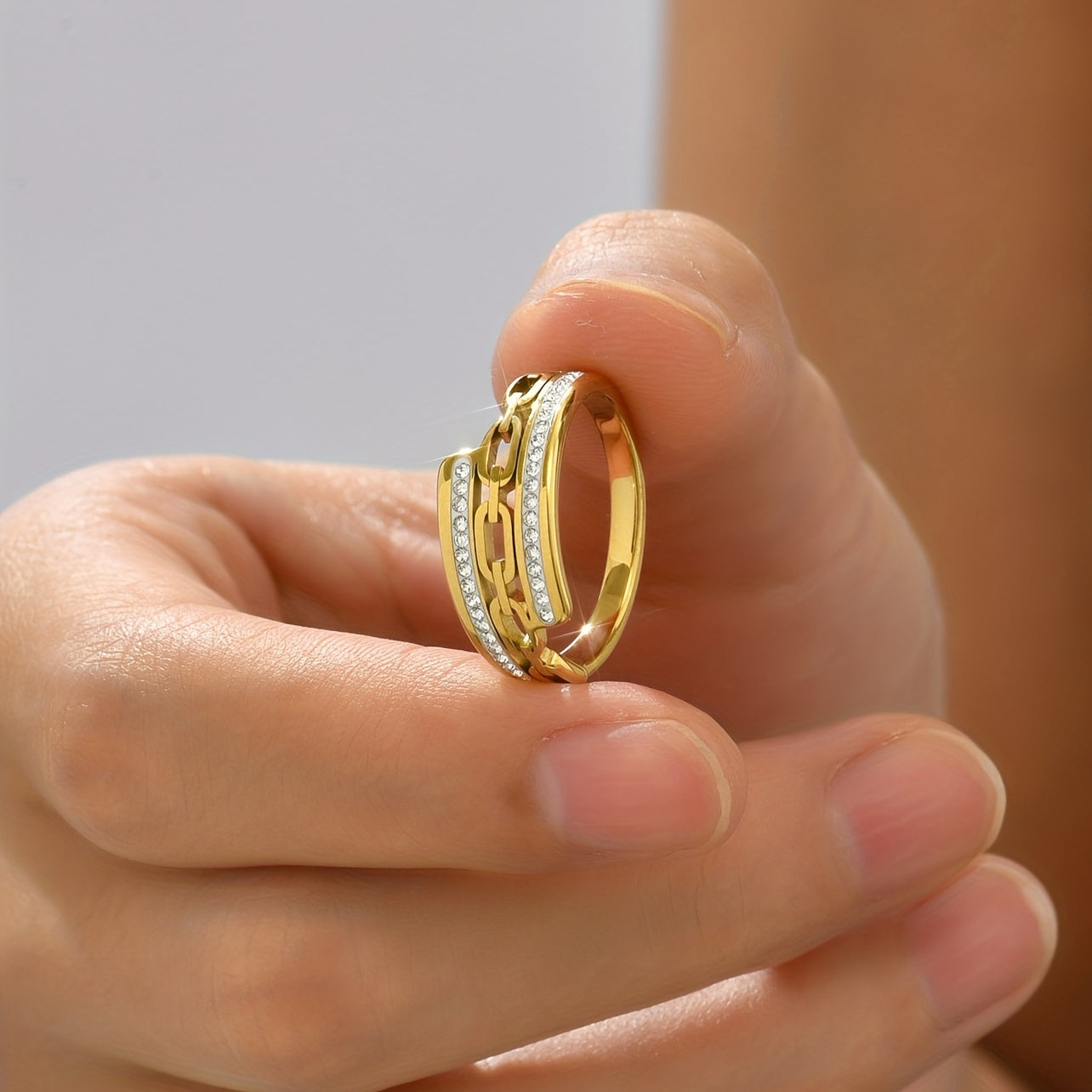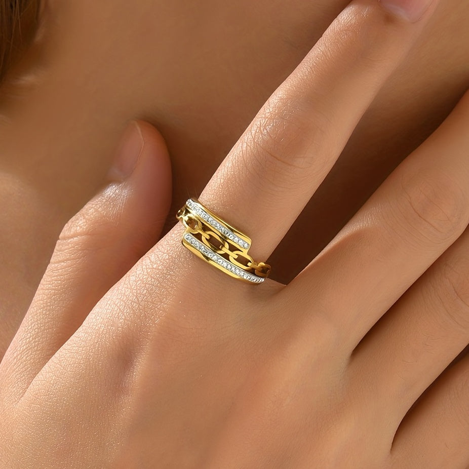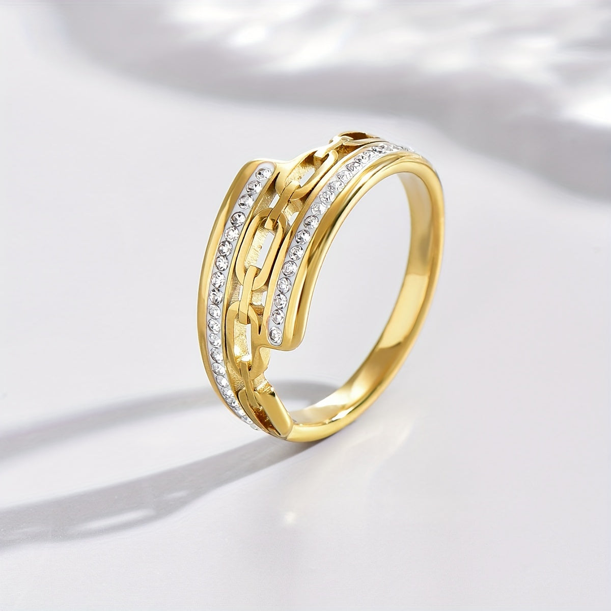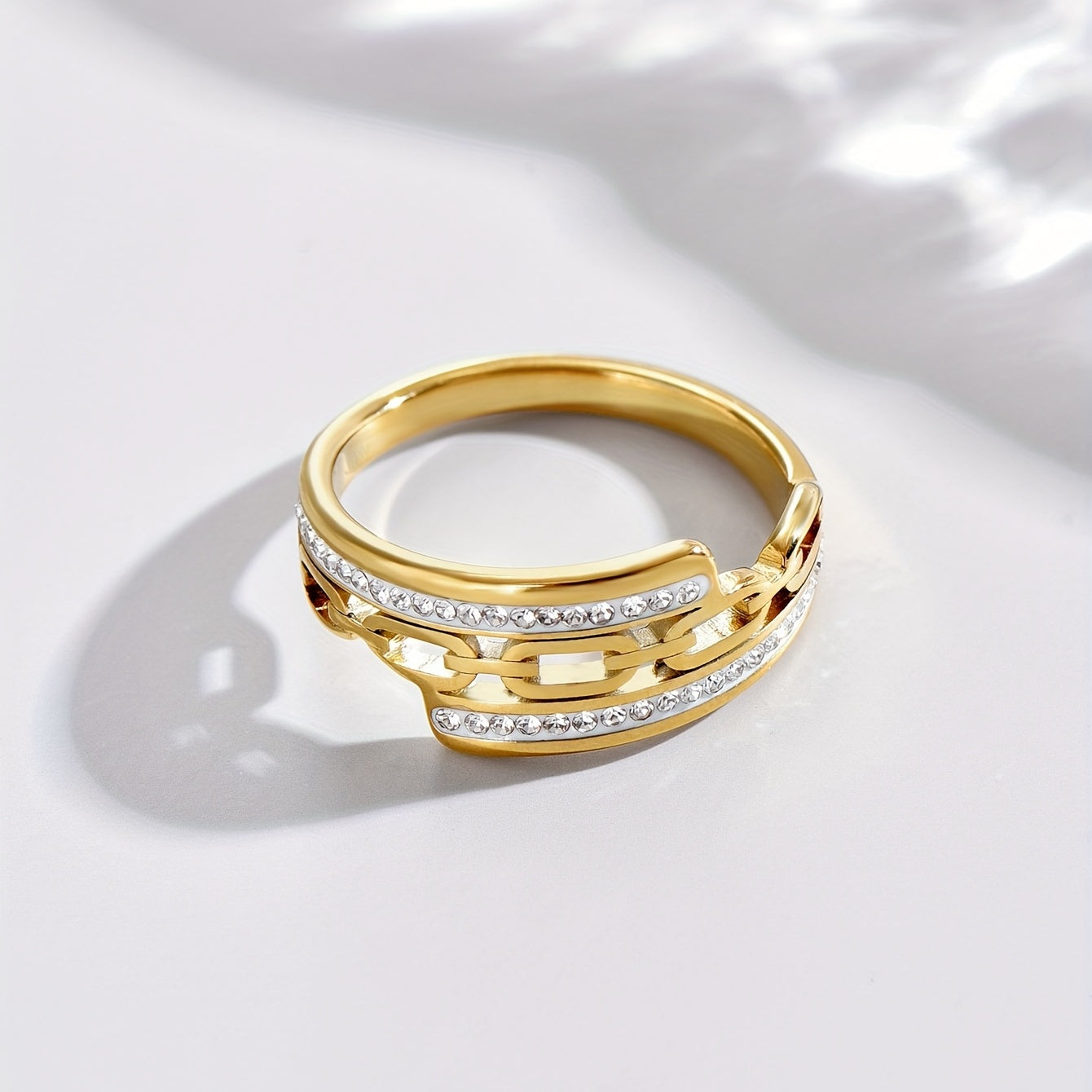 Elegant men's ring featuring a chain-shaped design with faux diamond accents in ceramic material. Perfect for adding a touch of sophistication to any outfit.