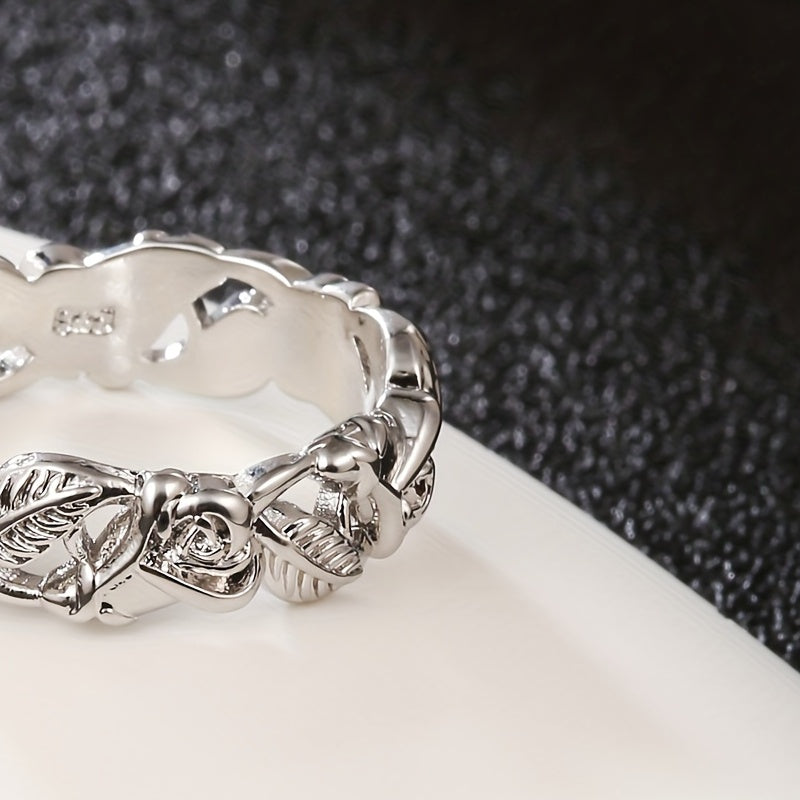 Stunning and delicate rose flower and leaf ring, perfect for adding a touch of elegance to any outfit.