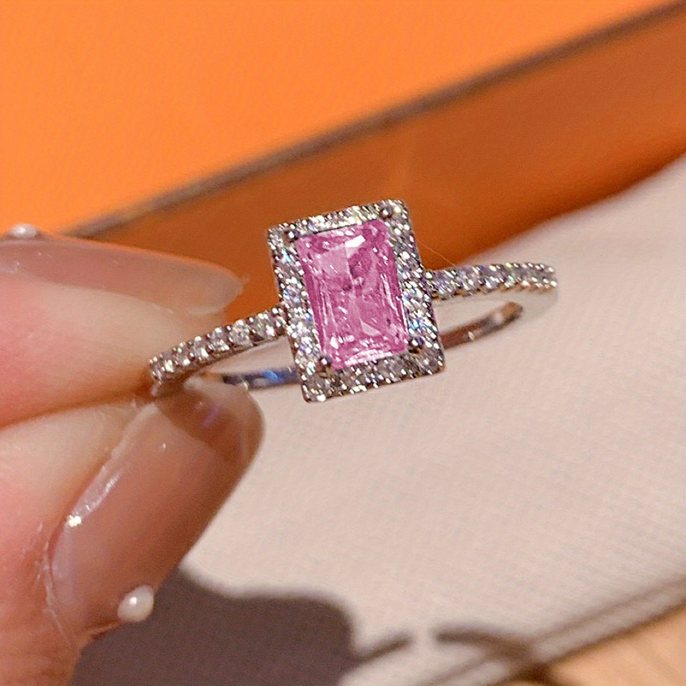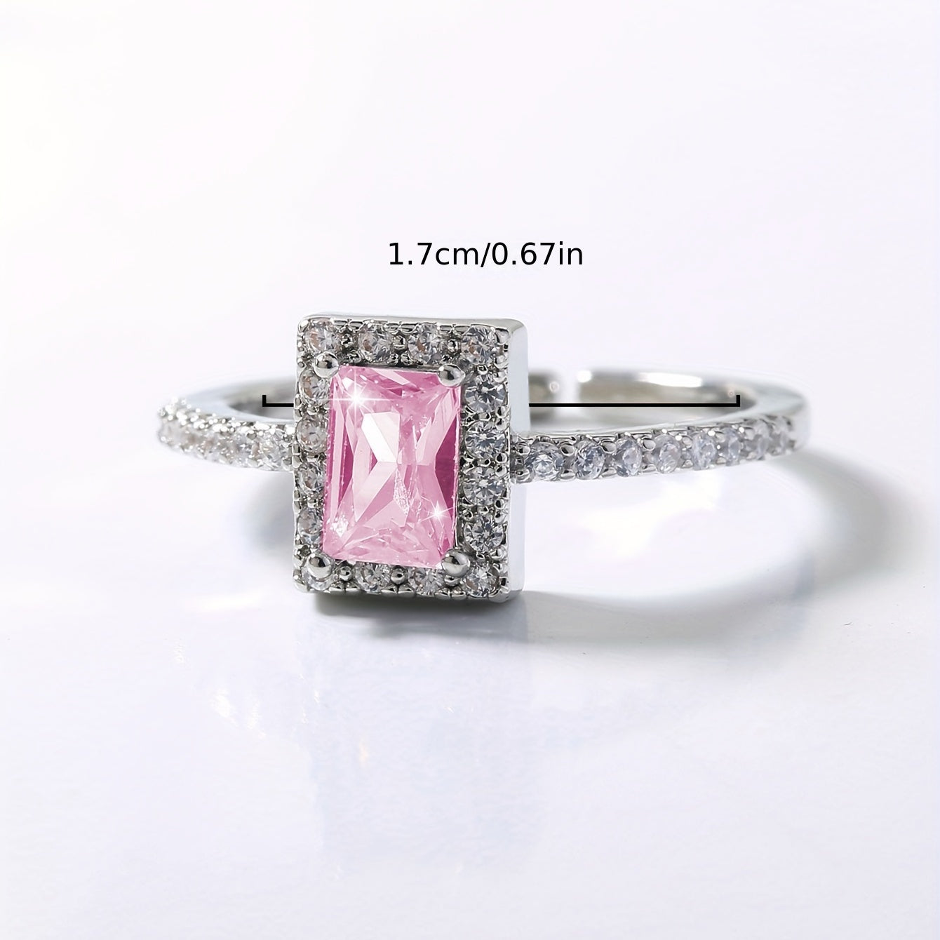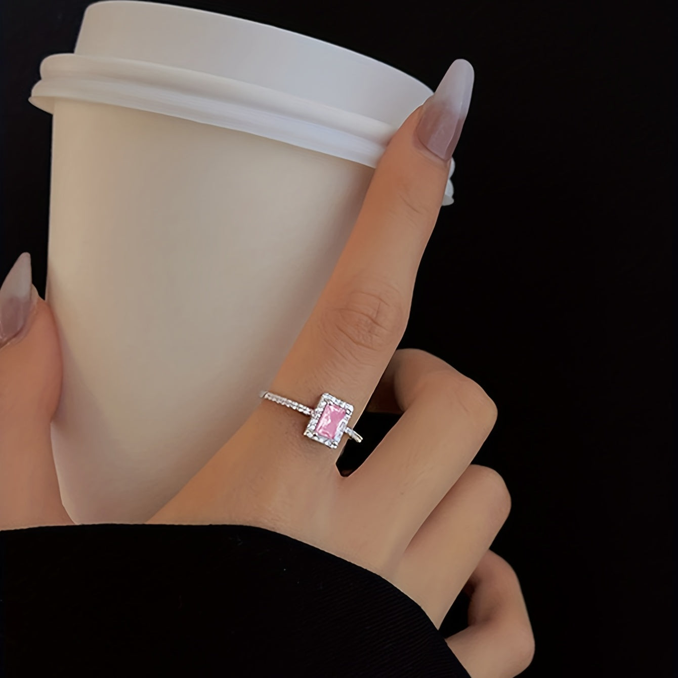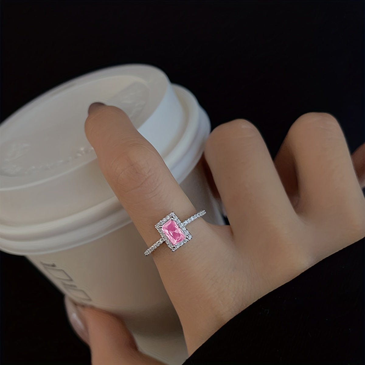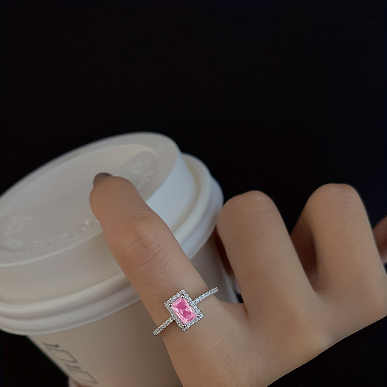 This elegant ring features a square pink zircon surrounded by a sparkling round zircon. Perfect for daily wear or parties, this dainty accessory complements any outfit.