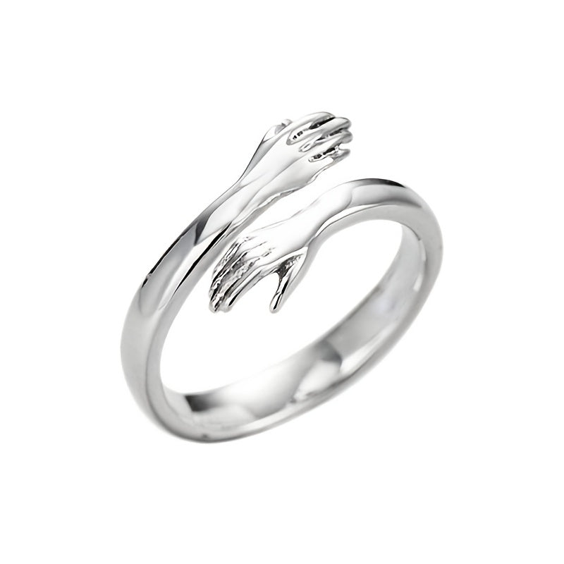 Express your love with this stylish ring featuring intertwined hands design. Perfect gift for both women and men.