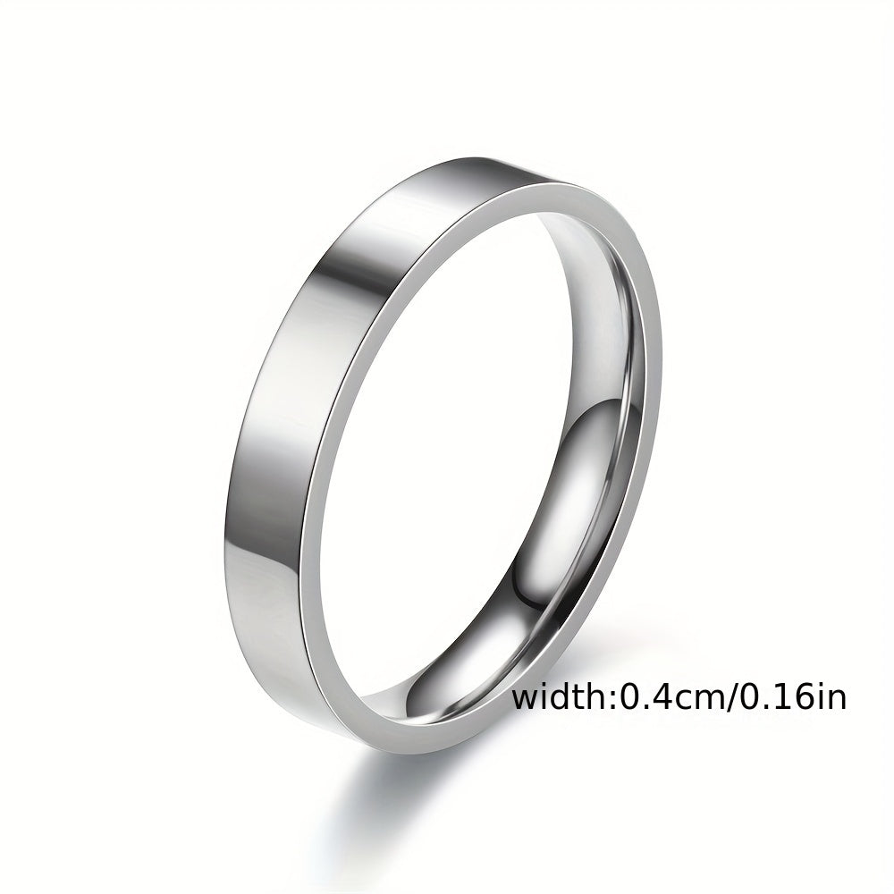 This sleek 4mm flat stainless steel ring is a perfect choice for couples. Made of titanium steel, it is durable and stylish.