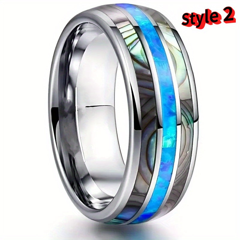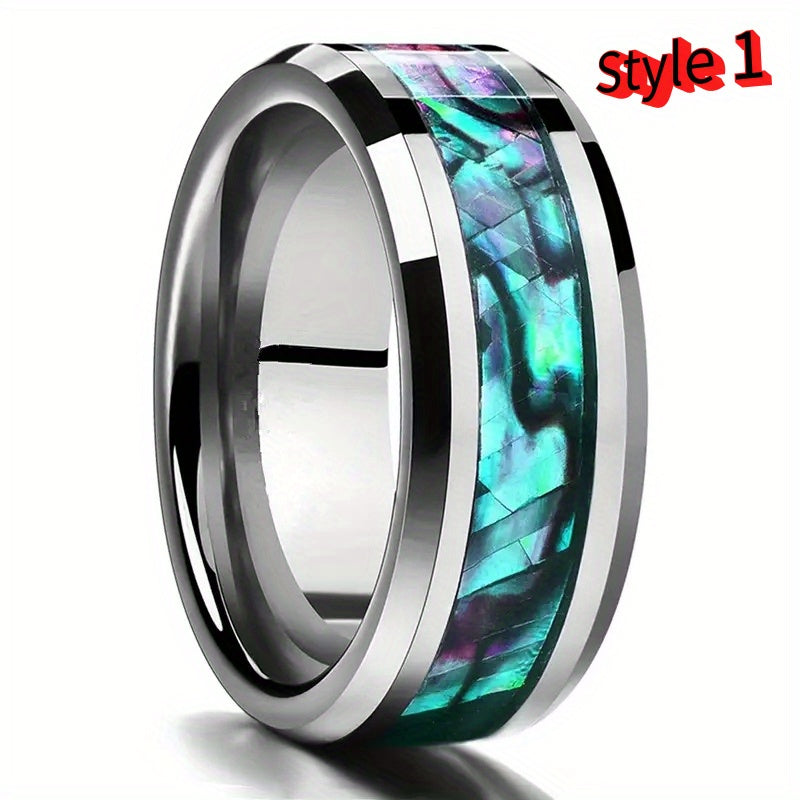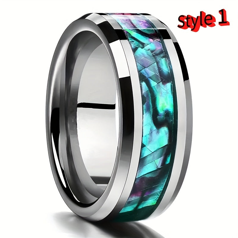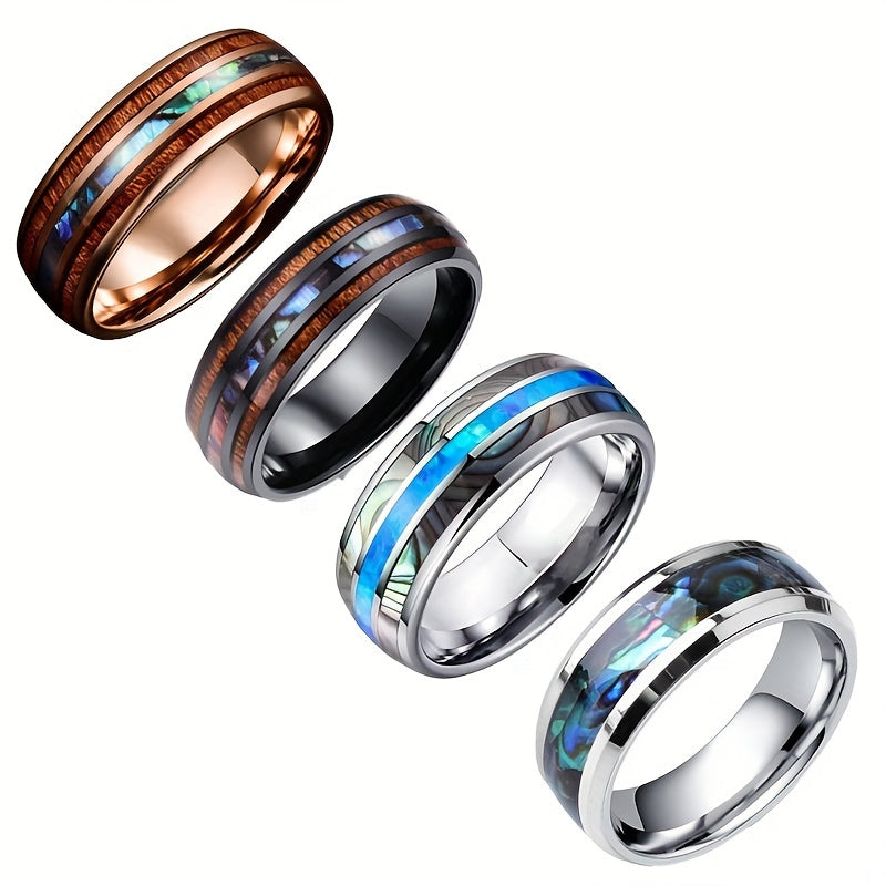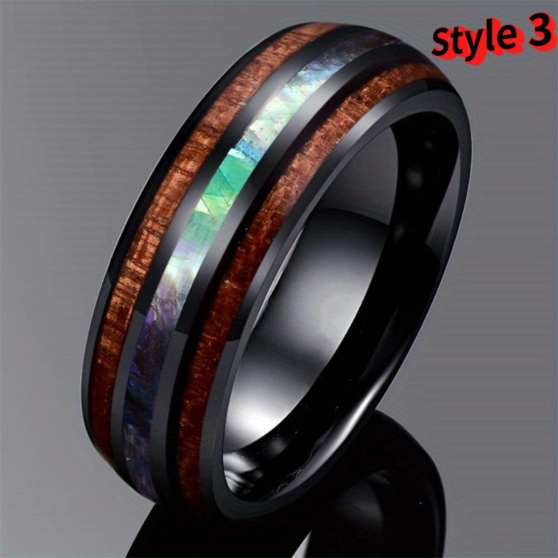 Add a touch of style to your look with this comfortable stainless steel ring featuring multicolour shell and wood grain design. Perfect for birthdays, parties, weddings, or as a gift.