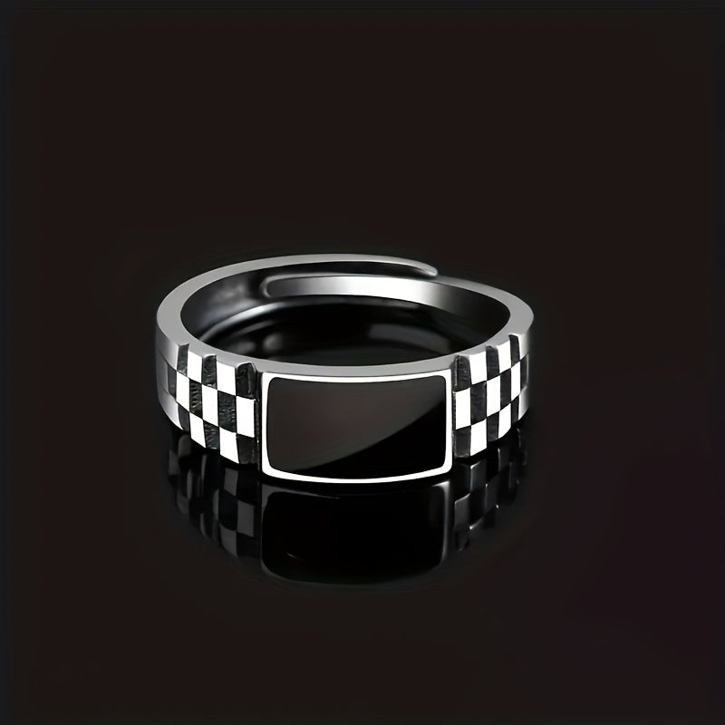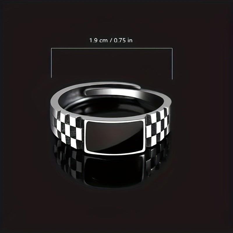 Elevate your style with this retro checkerboard ring featuring a high-end design. This single ring has a unique sense of glue, making it a standout accessory for men.