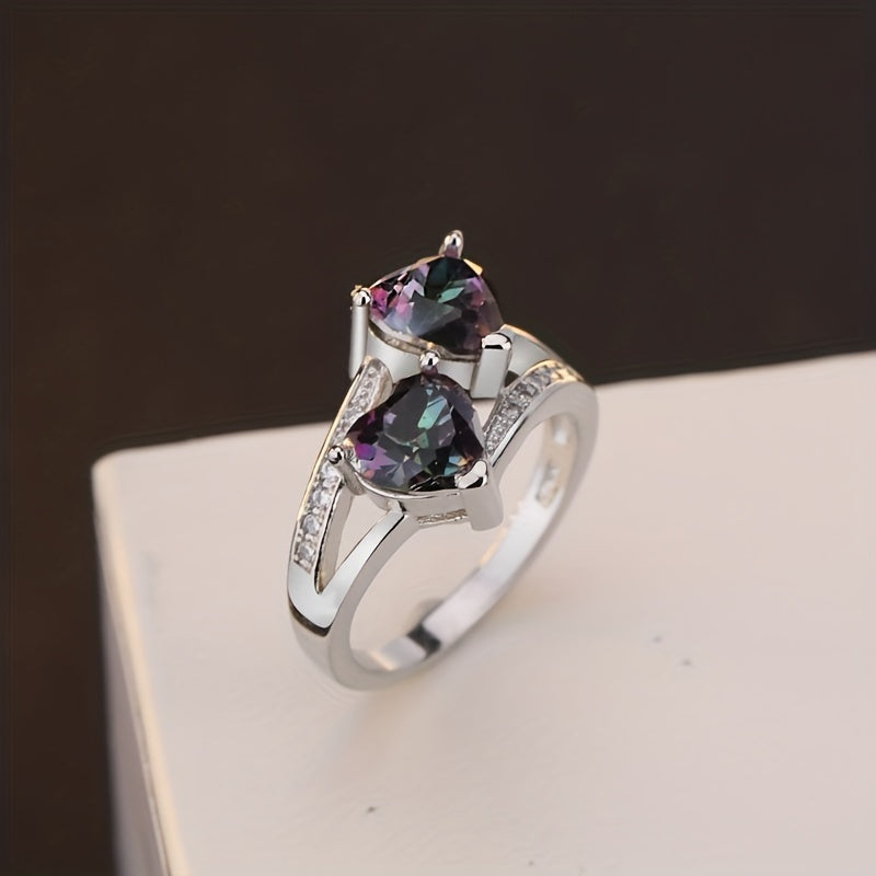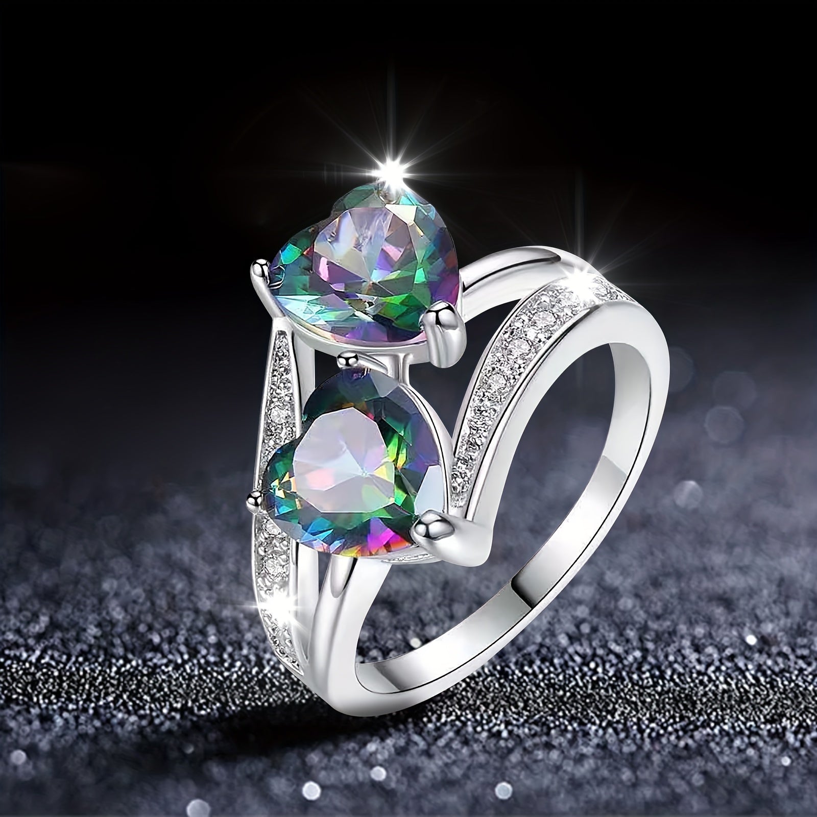 This stainless steel ring features a colorful heart crystal, making it a perfect gift for couples. The ring is durable and stylish, suitable for daily wear.