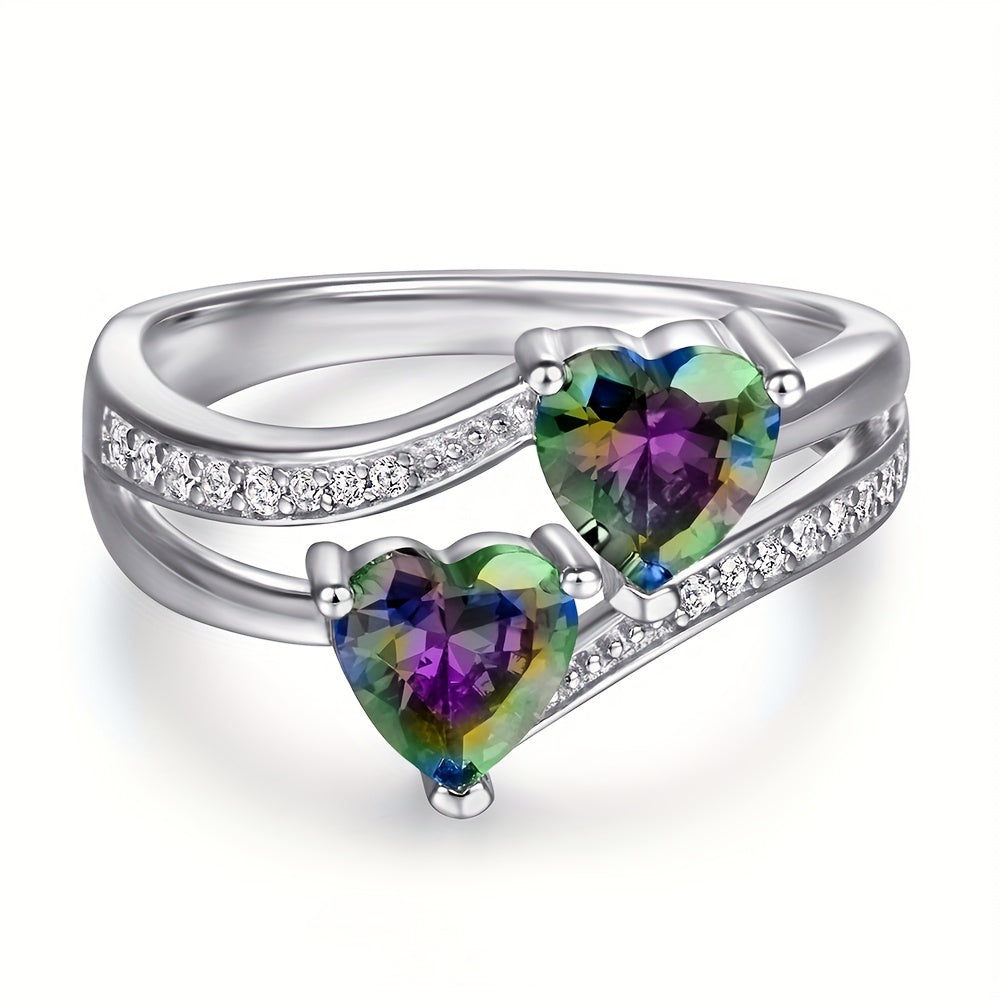 Men's Colorful Heart Crystal Stainless Steel Ring - Gift