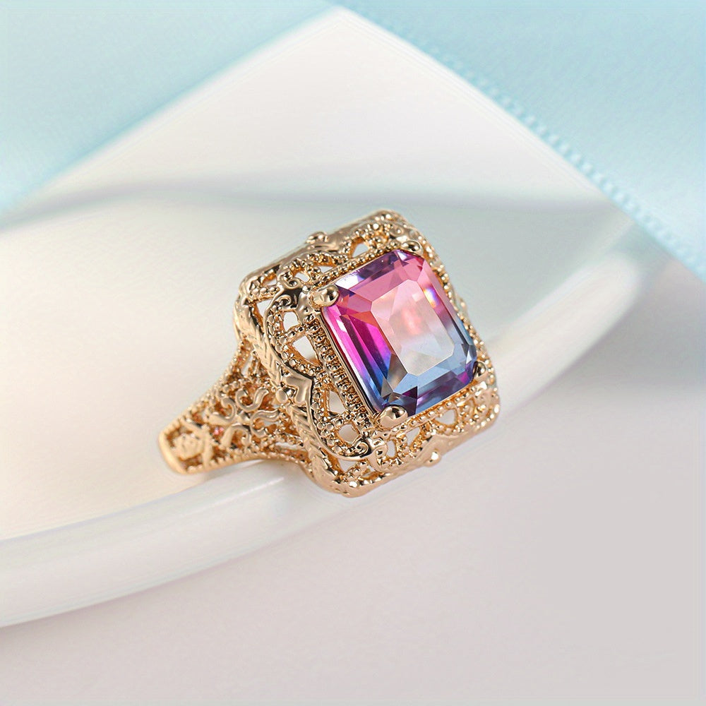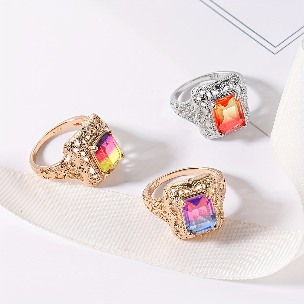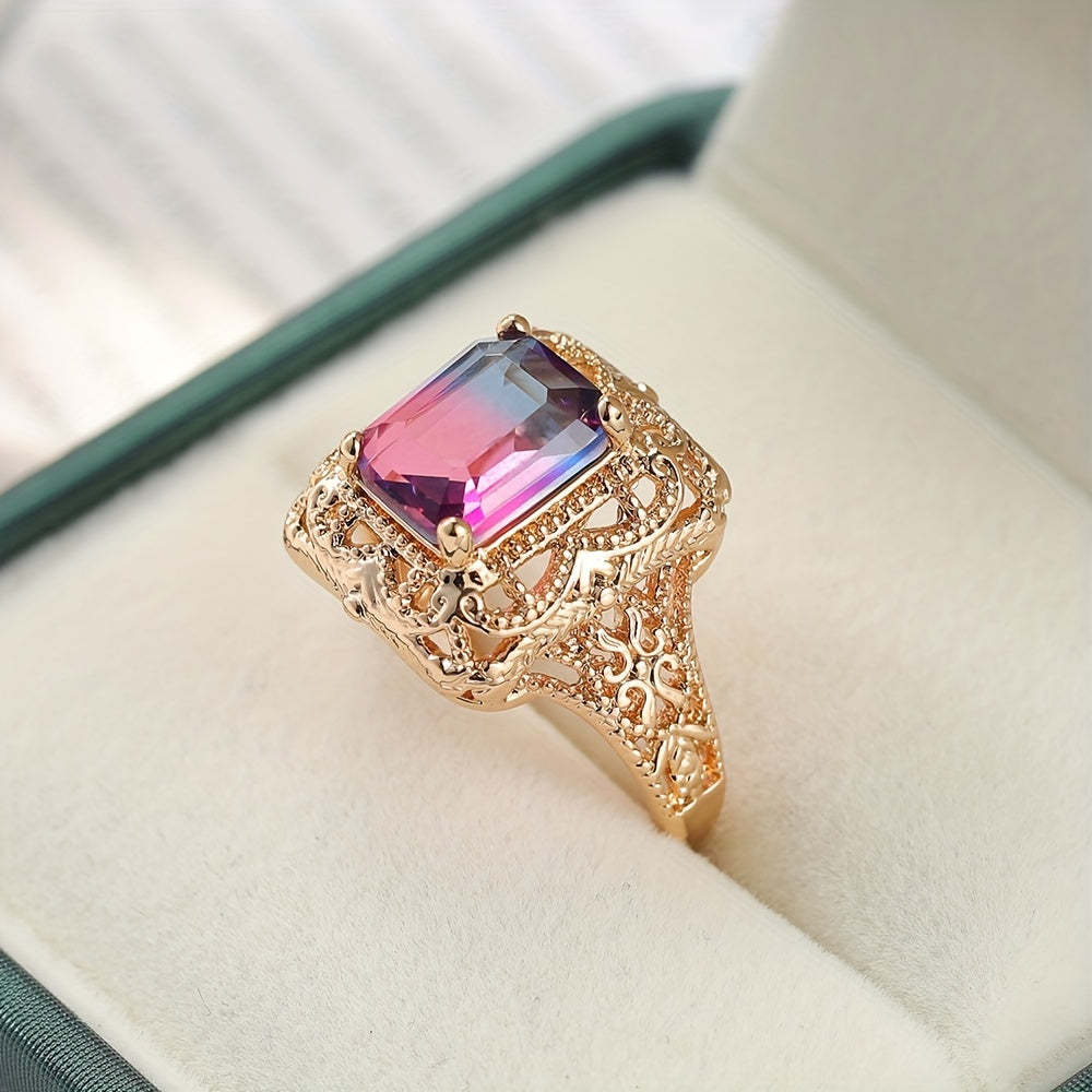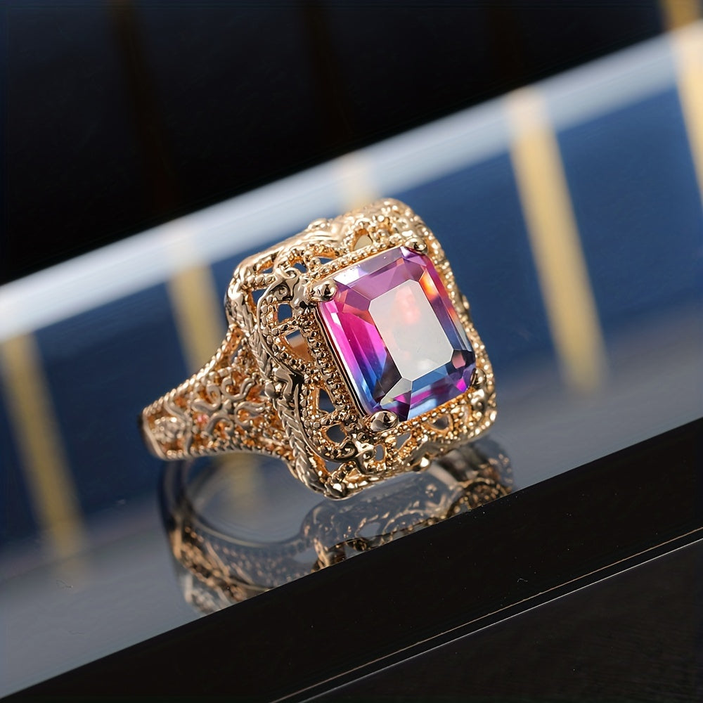 This stunning crystal ring features artificial diamond inlay, making it the perfect accessory for parties and special occasions.