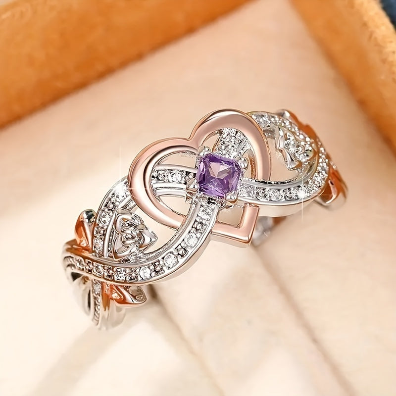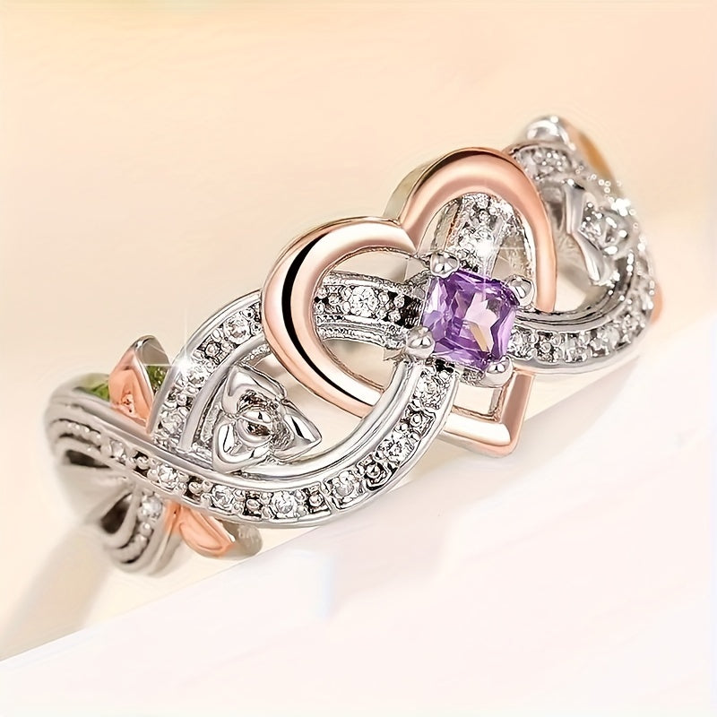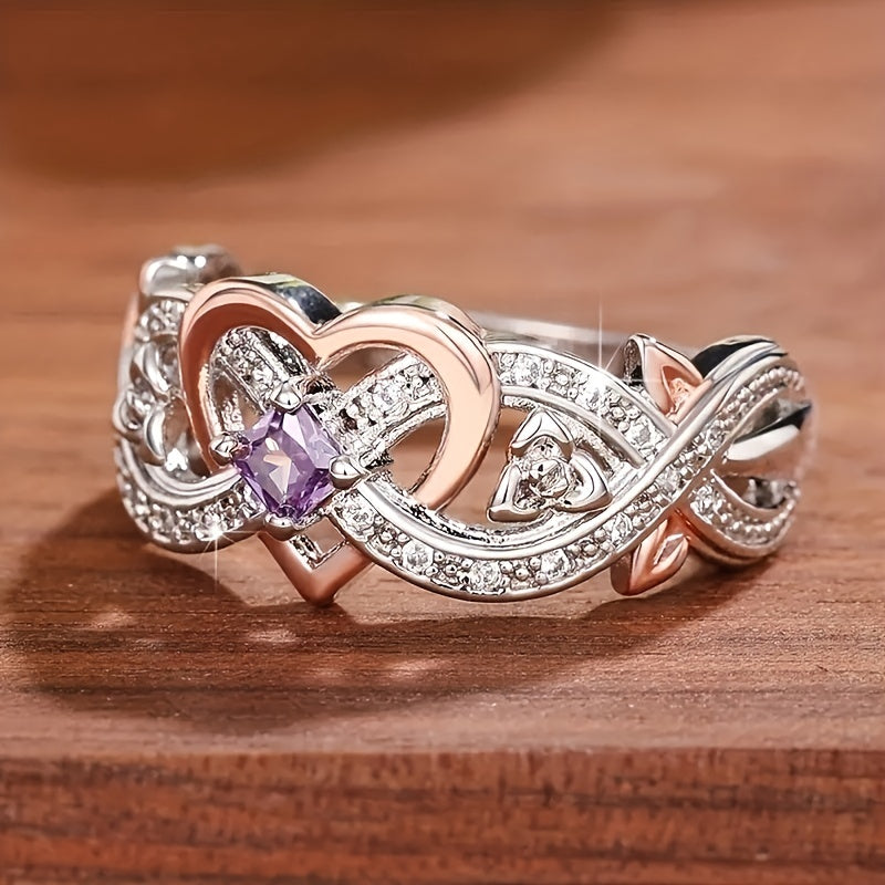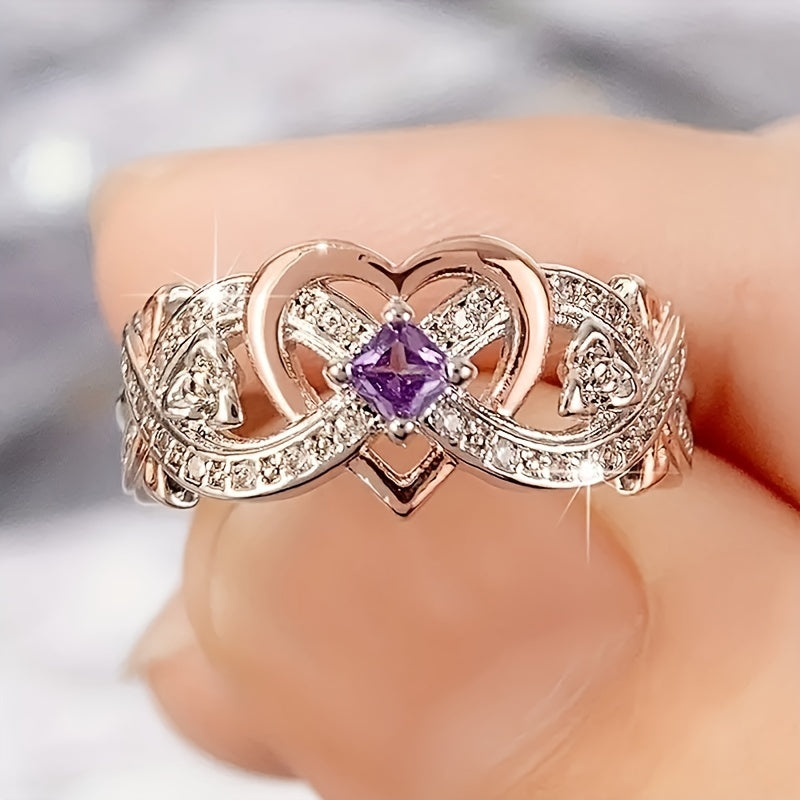 This exquisite men's ring features a heart-shaped purple crystal zircon, perfect for parties or engagements. Show your love and commitment with this stunning piece.