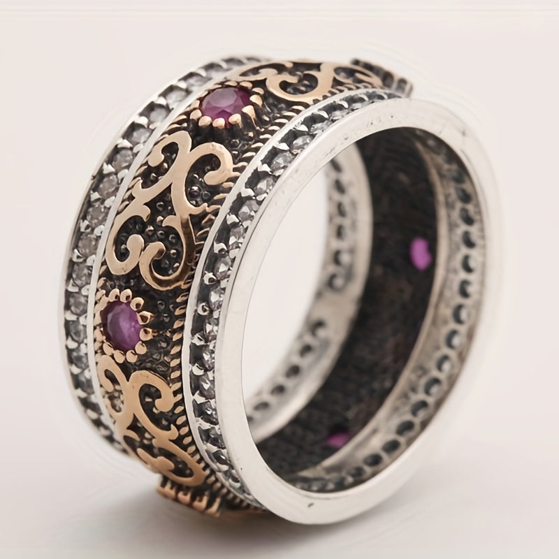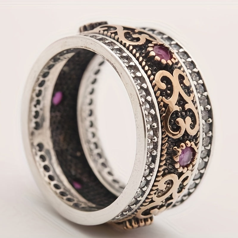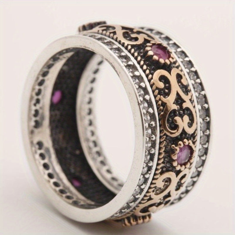 Add a touch of vintage charm with this electroplated ring set featuring a retro flower design.