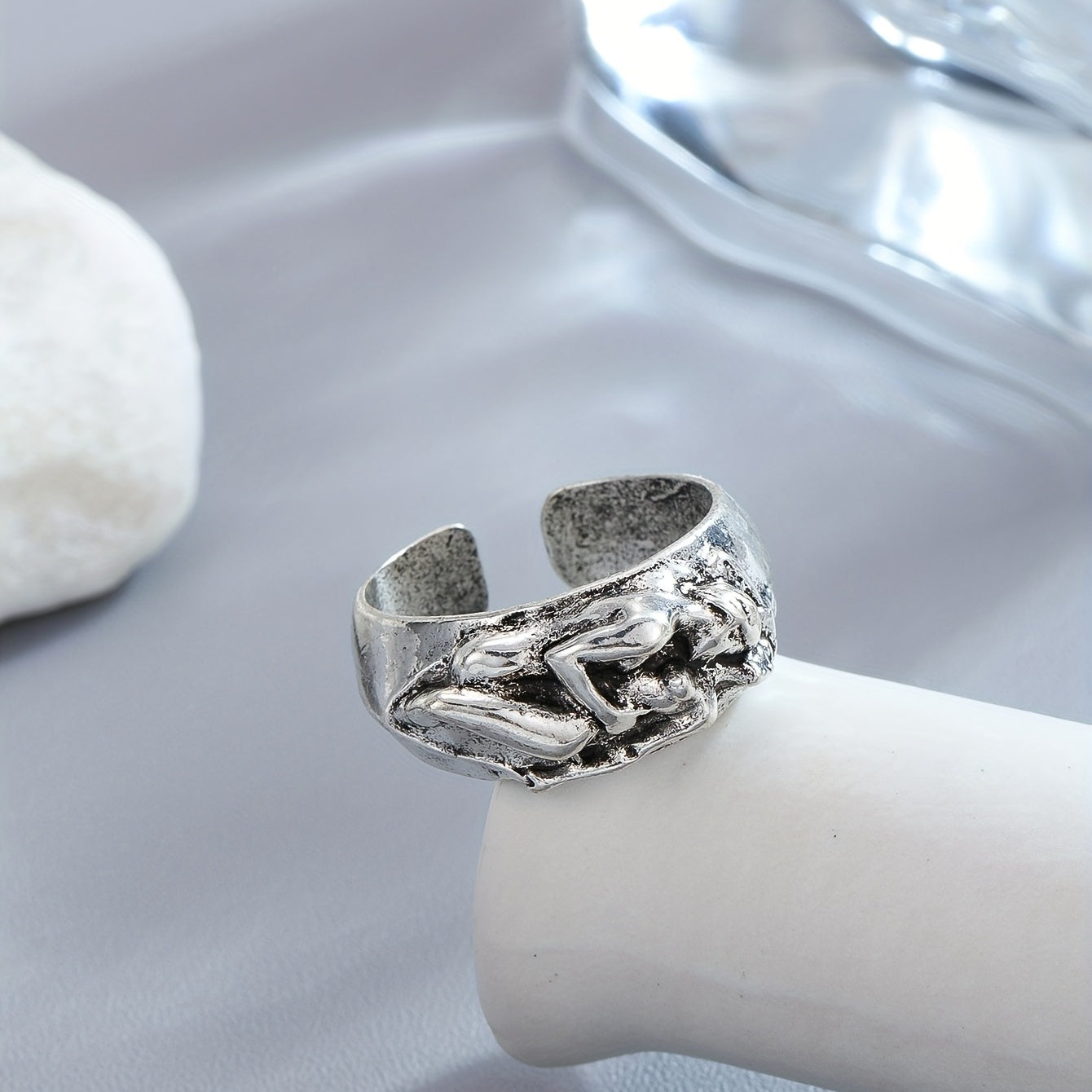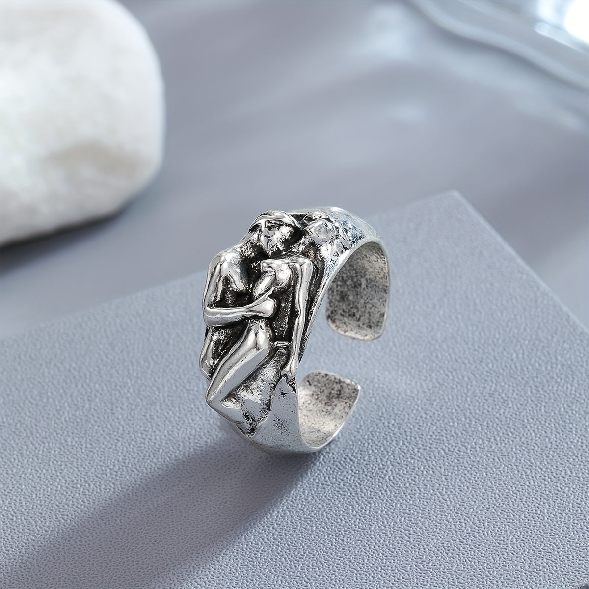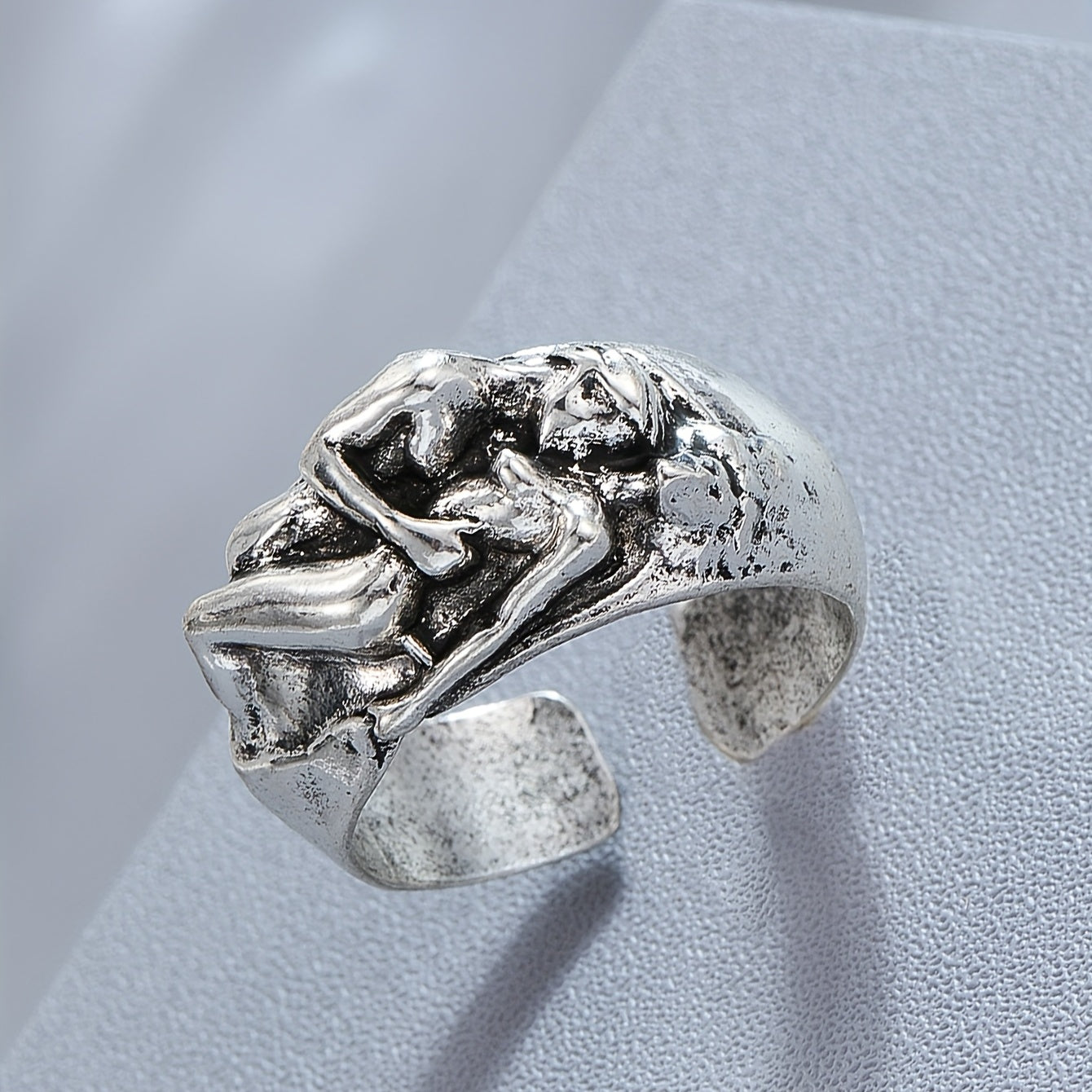 Add a bold touch to your look with this retro punk ring featuring a face to face design. Perfect for couples or individuals wanting to make a statement.