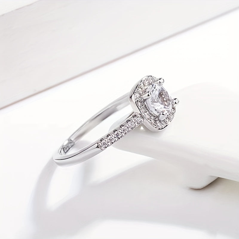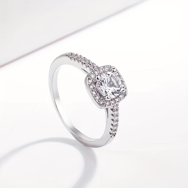 This stylish ring features a faux diamond, perfect for engagements or proposals. Electroplated in golden color, it's a great addition to any jewelry collection.