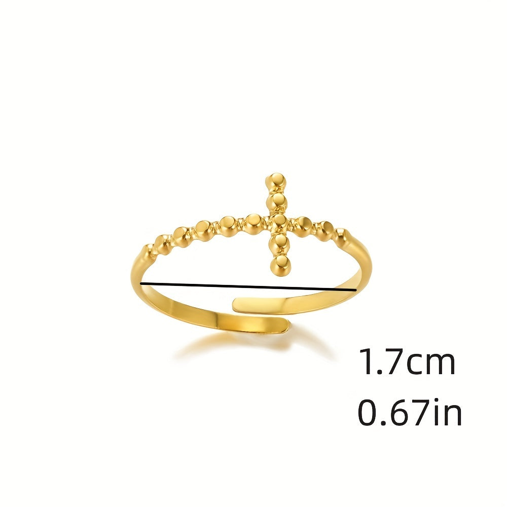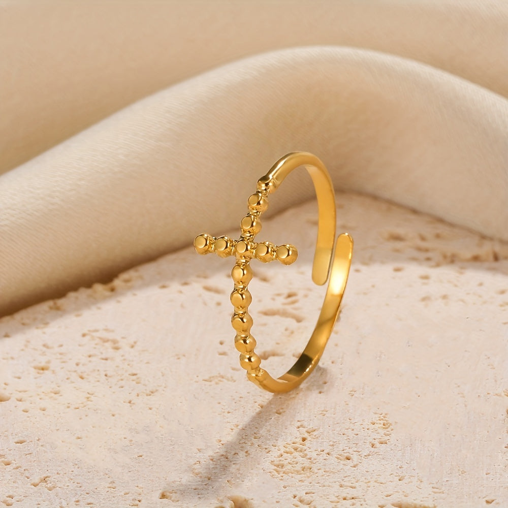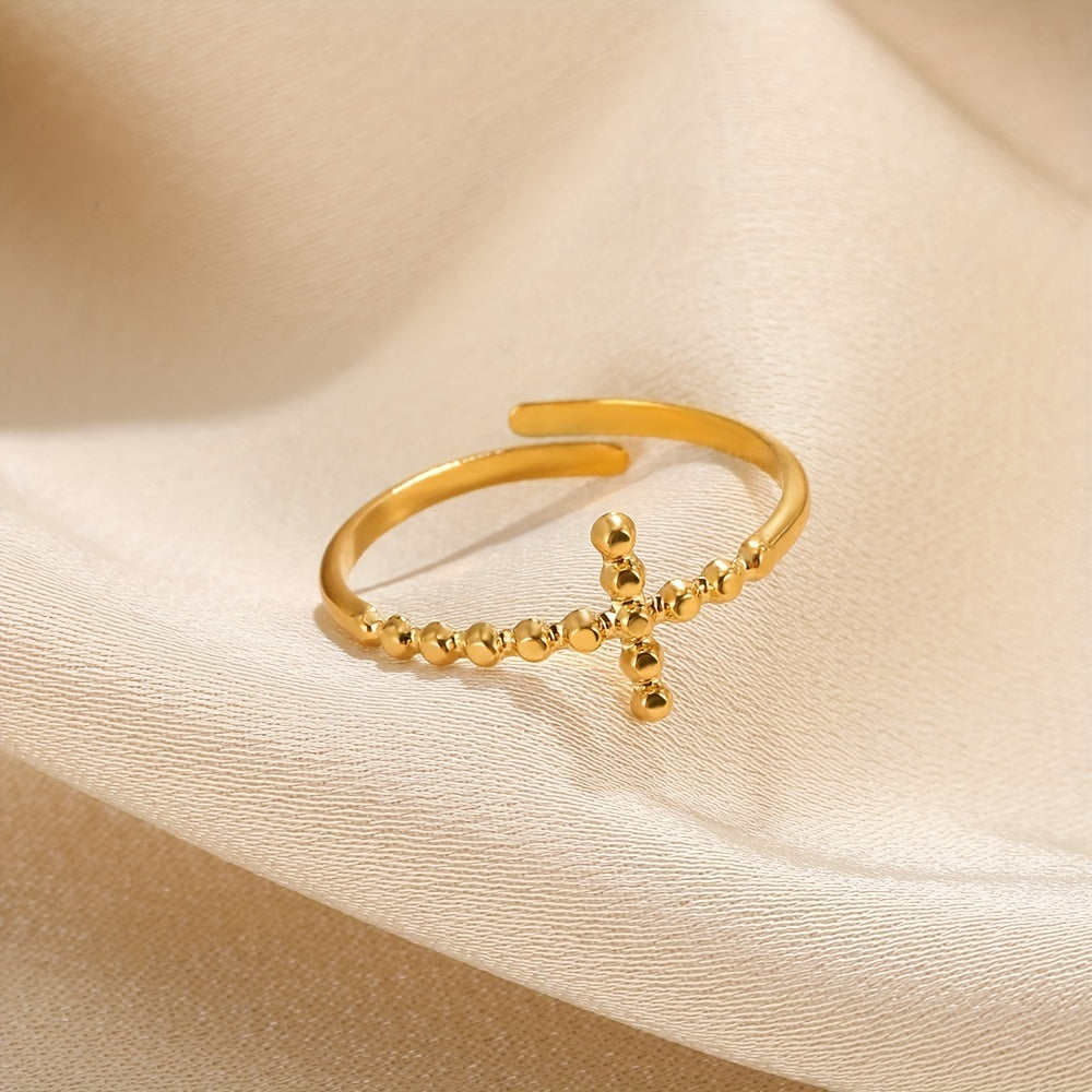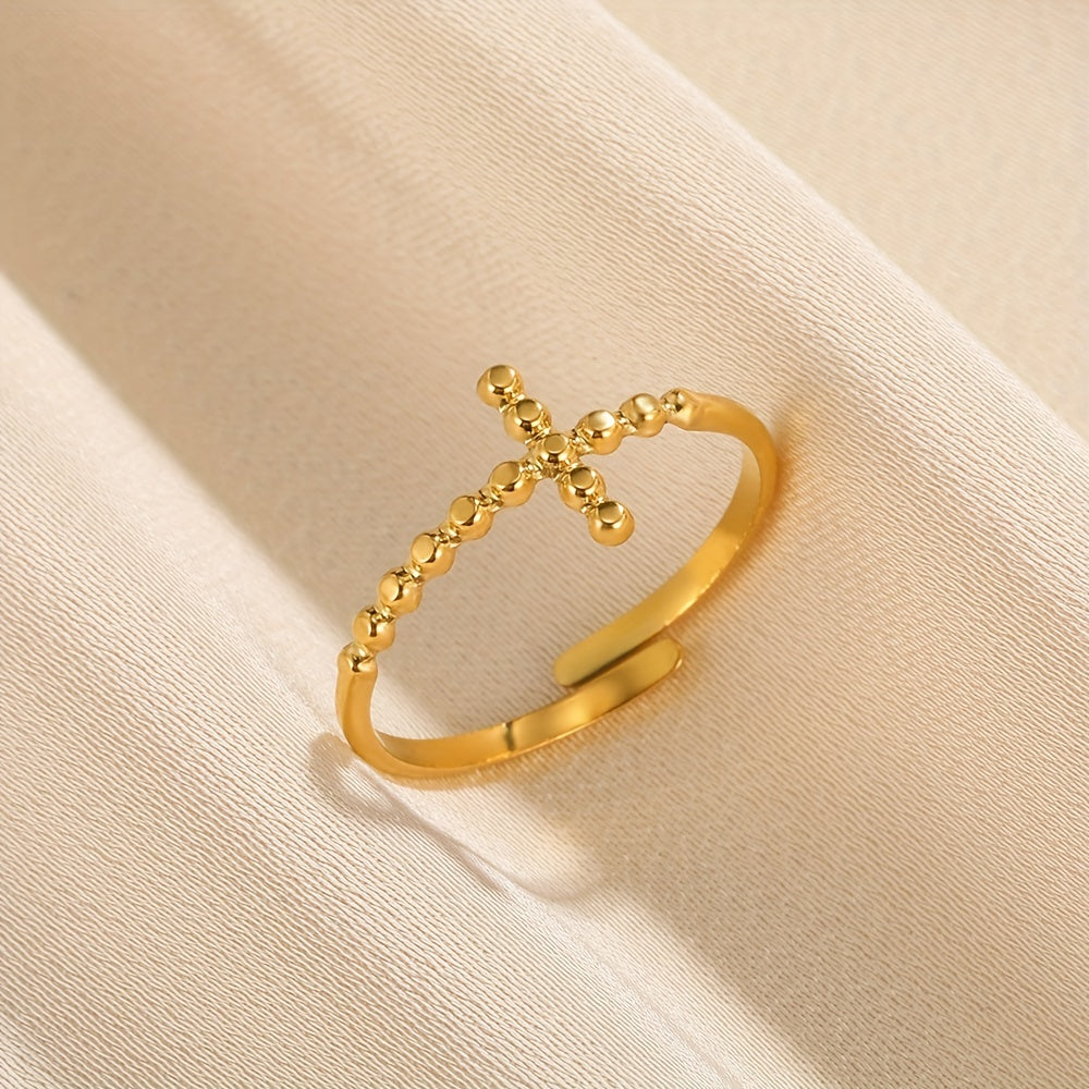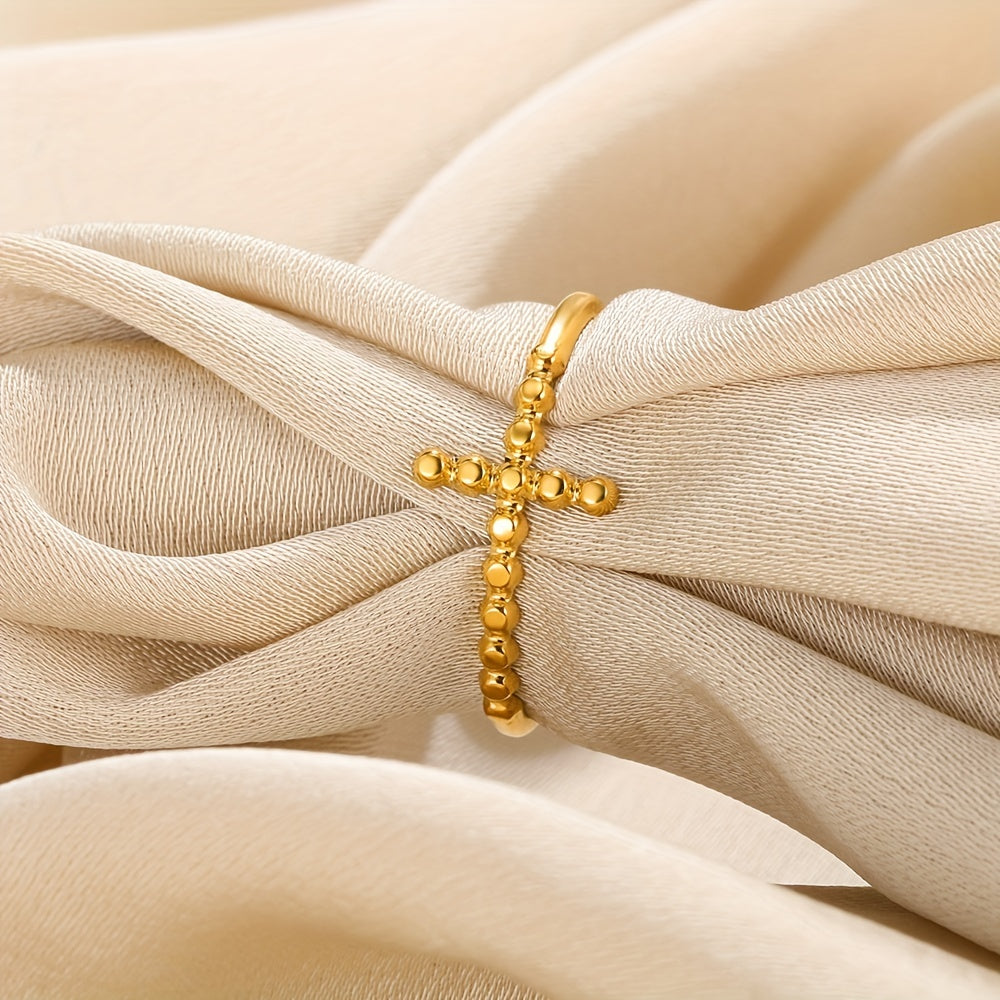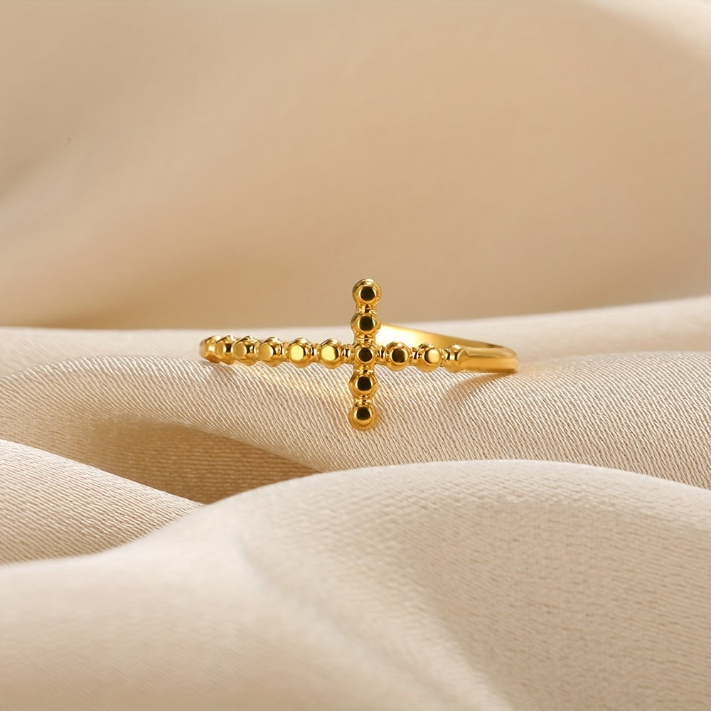 This stylish ring features a round bead cross design, made of high-quality stainless steel.