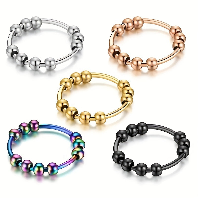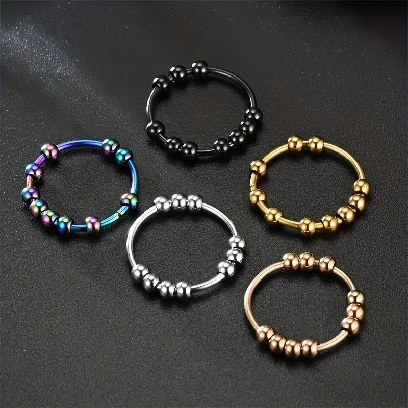 This stylish men's ring features ten lucky beads on a stainless steel band.