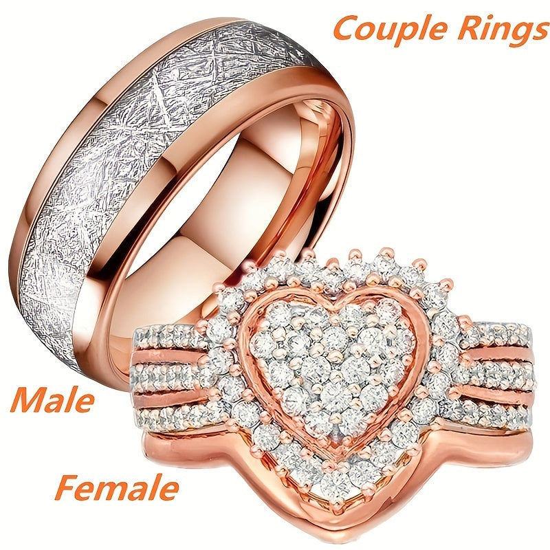 Men's Stainless Steel Rhinestone Heart Ring Couple Bridal Wedding Engagement Rin