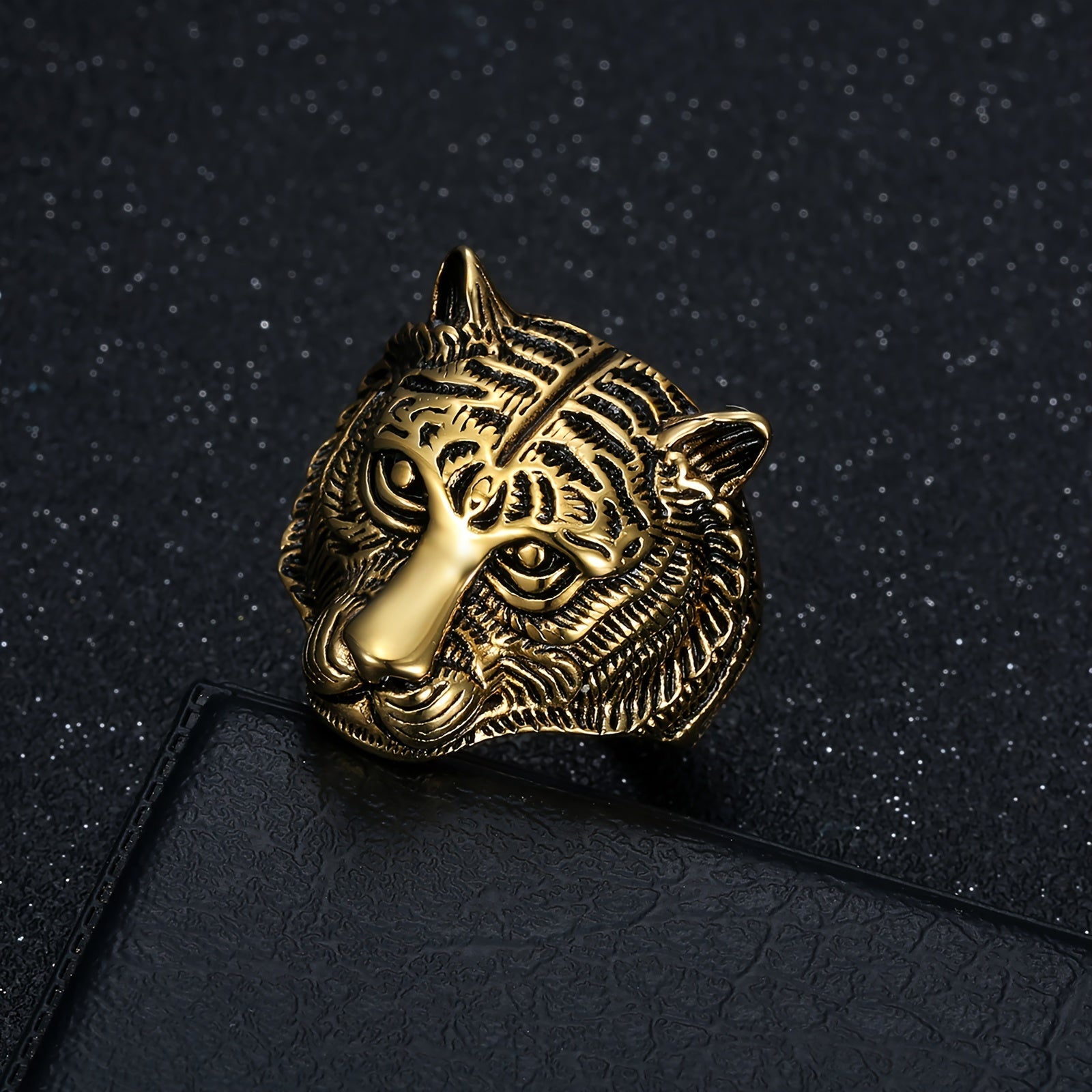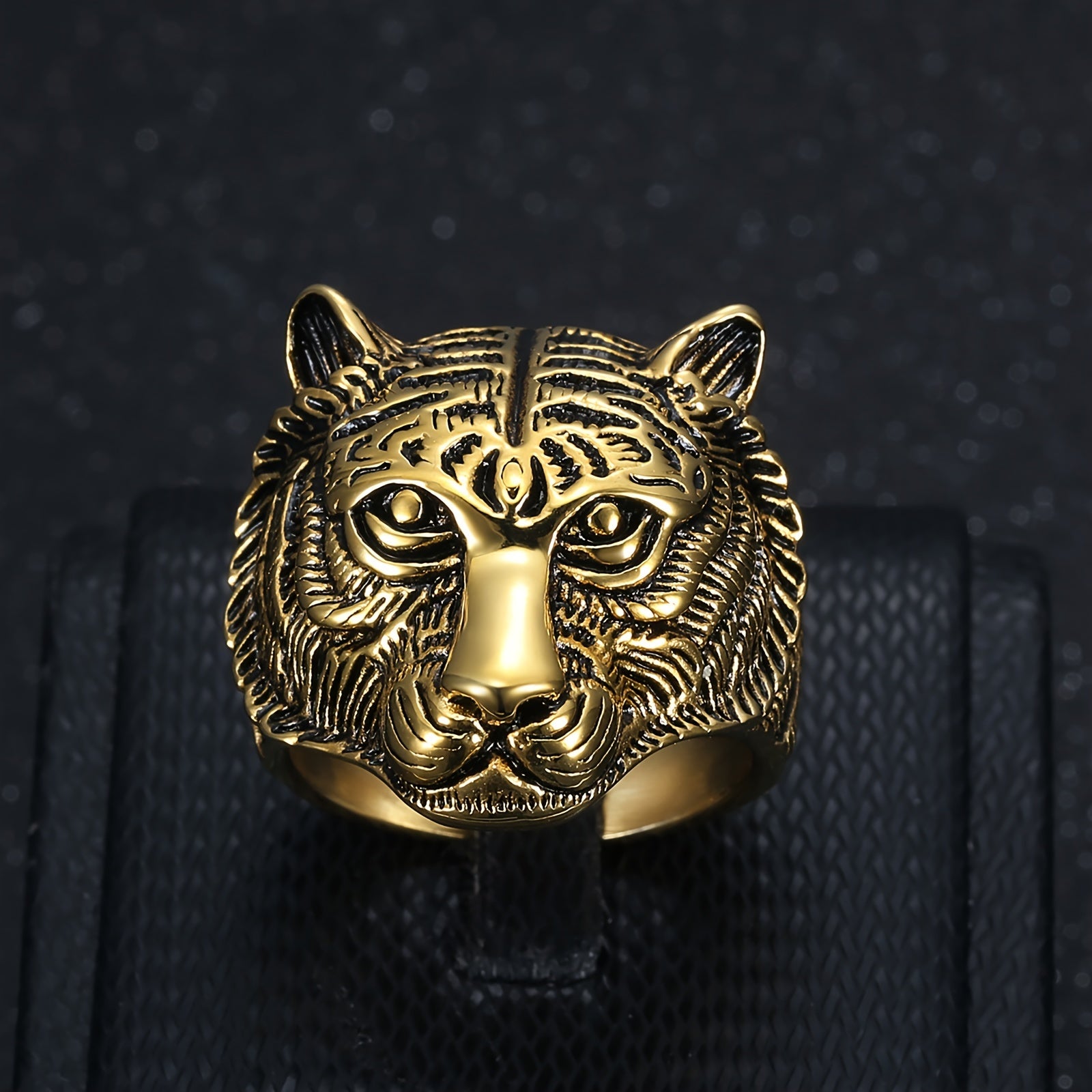 Make a fierce style statement with this men's tiger ring. Crafted from durable stainless steel, it features intricate tiger detailing for a bold look.