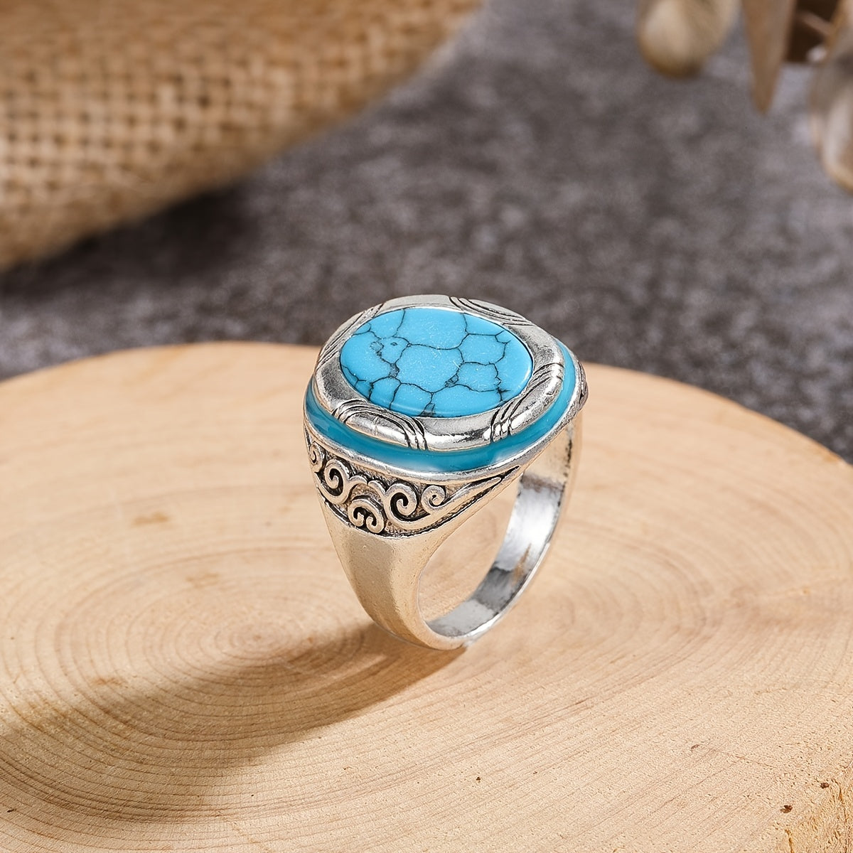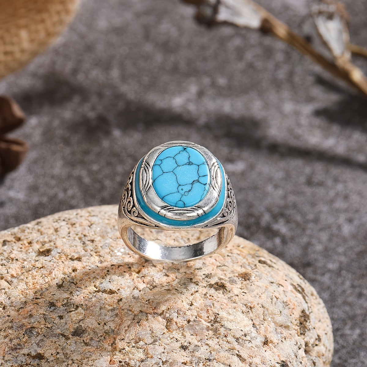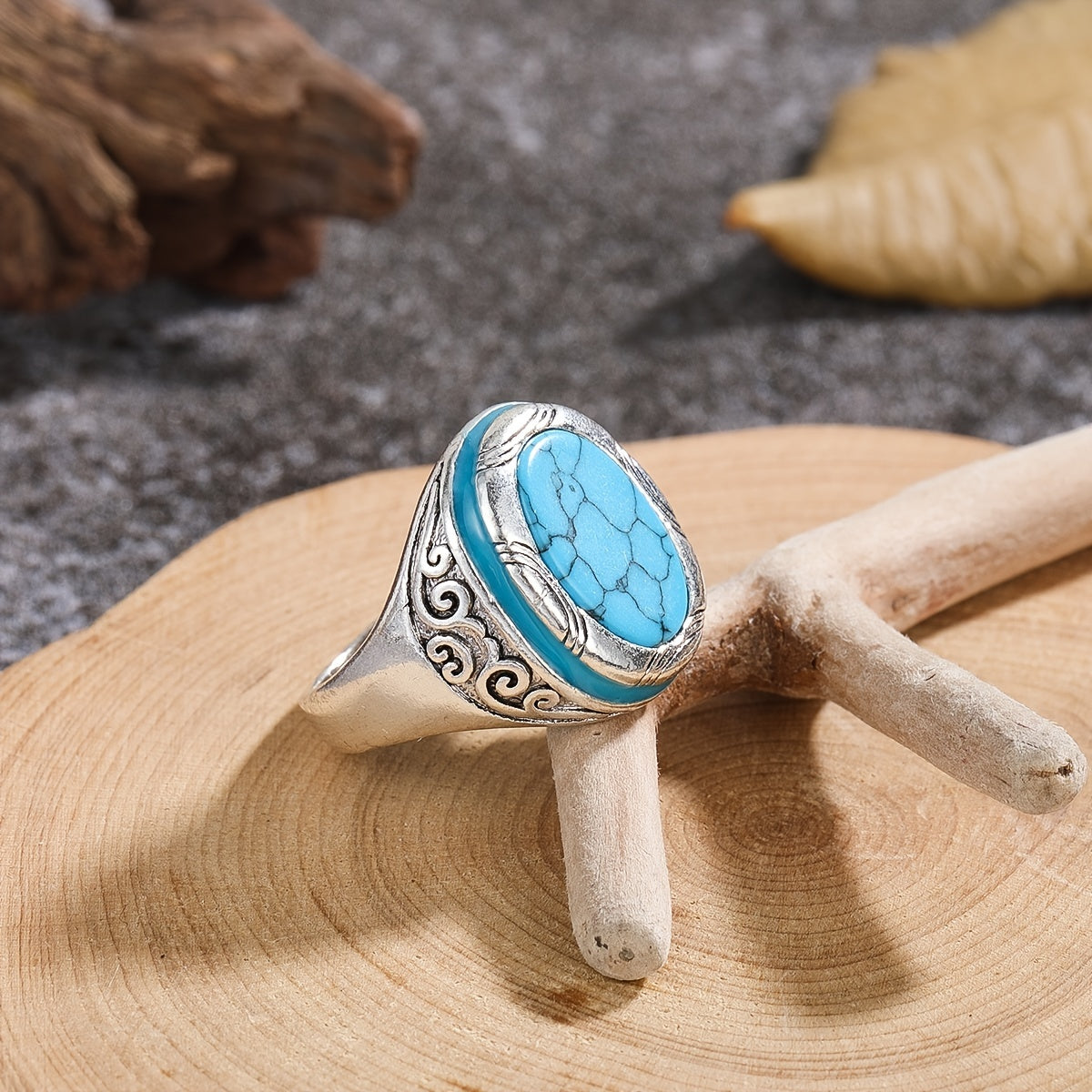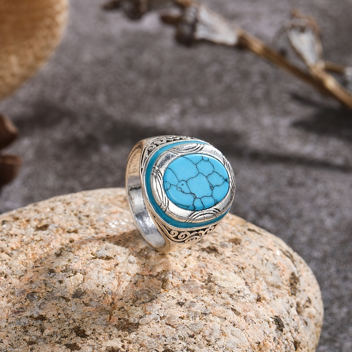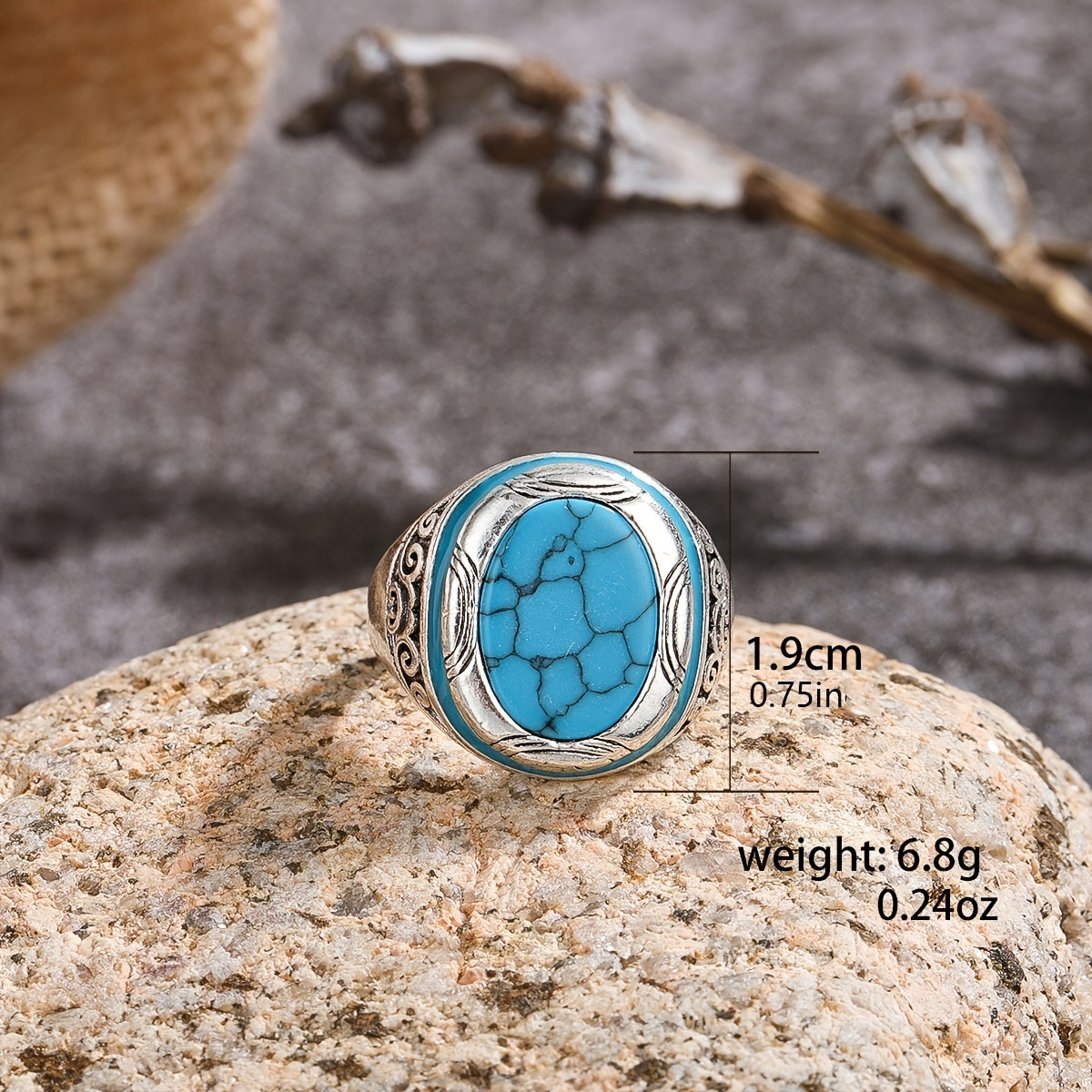 This men's ring features a large turquoise stone set in durable stainless steel, creating a retro and stylish look.