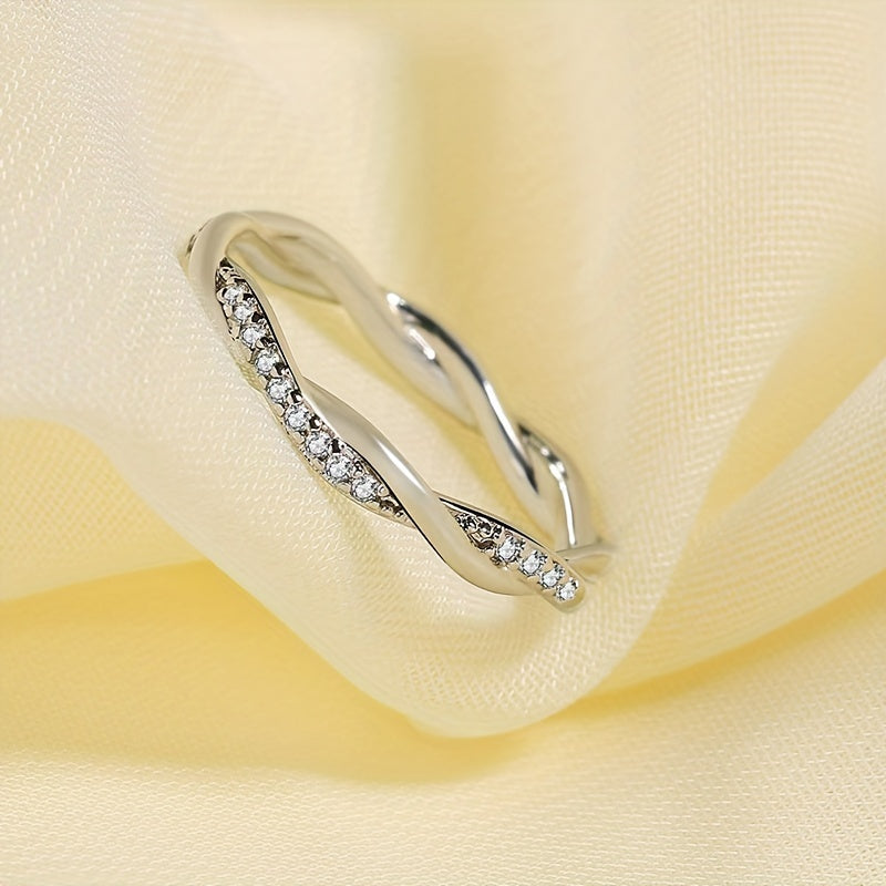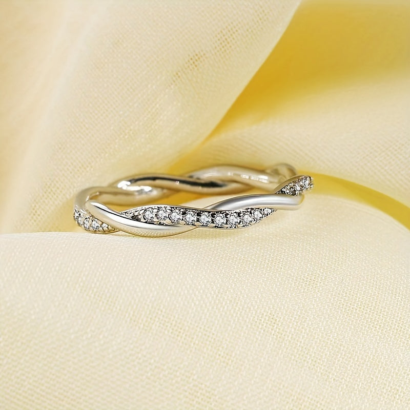 This men's twist ring features zircon detailing, perfect for a couple or as a pair.