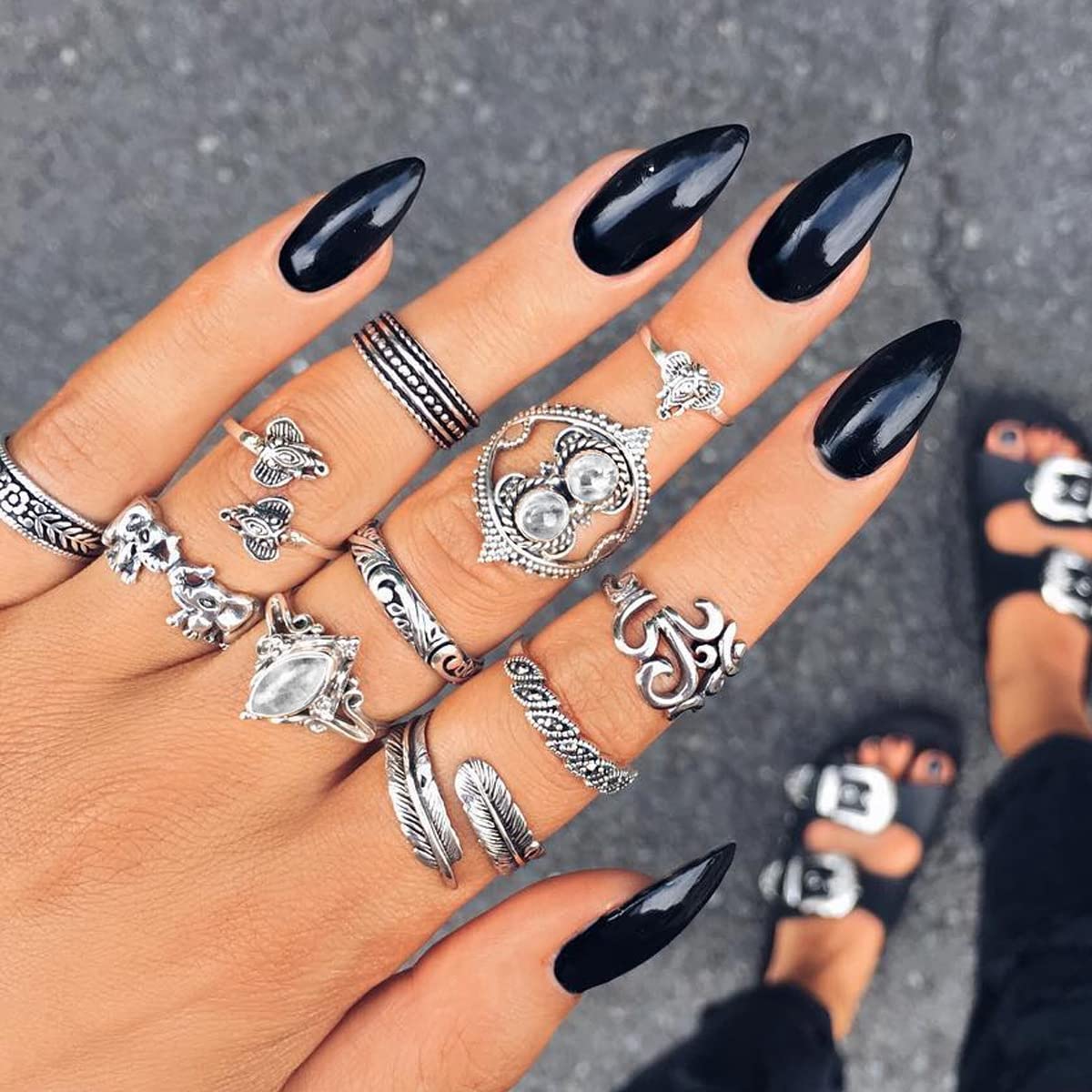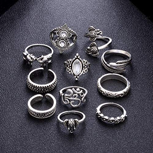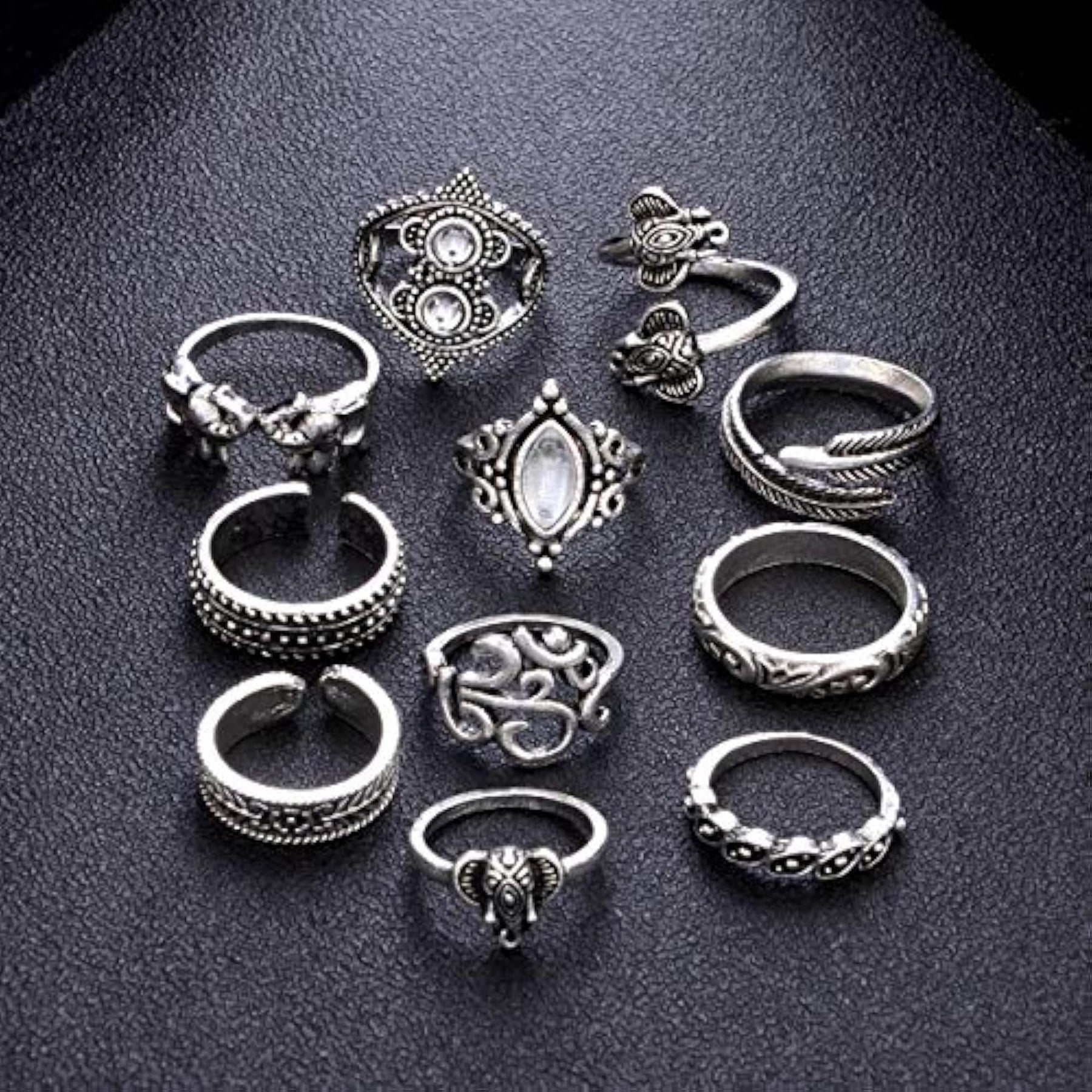 Elevate your style with this set of 11 metal boho midi finger rings. Perfect for adding a touch of bohemian flair to any outfit.