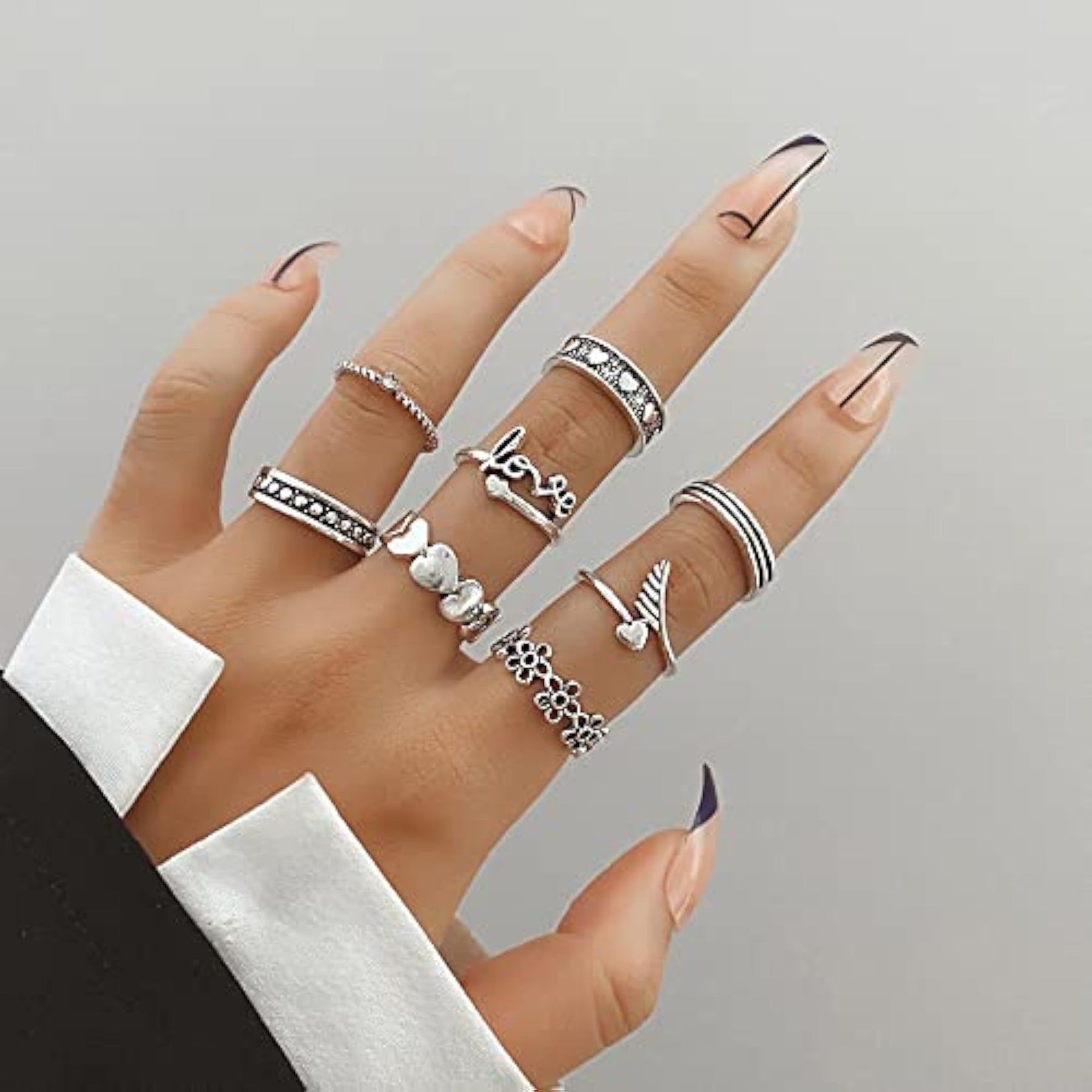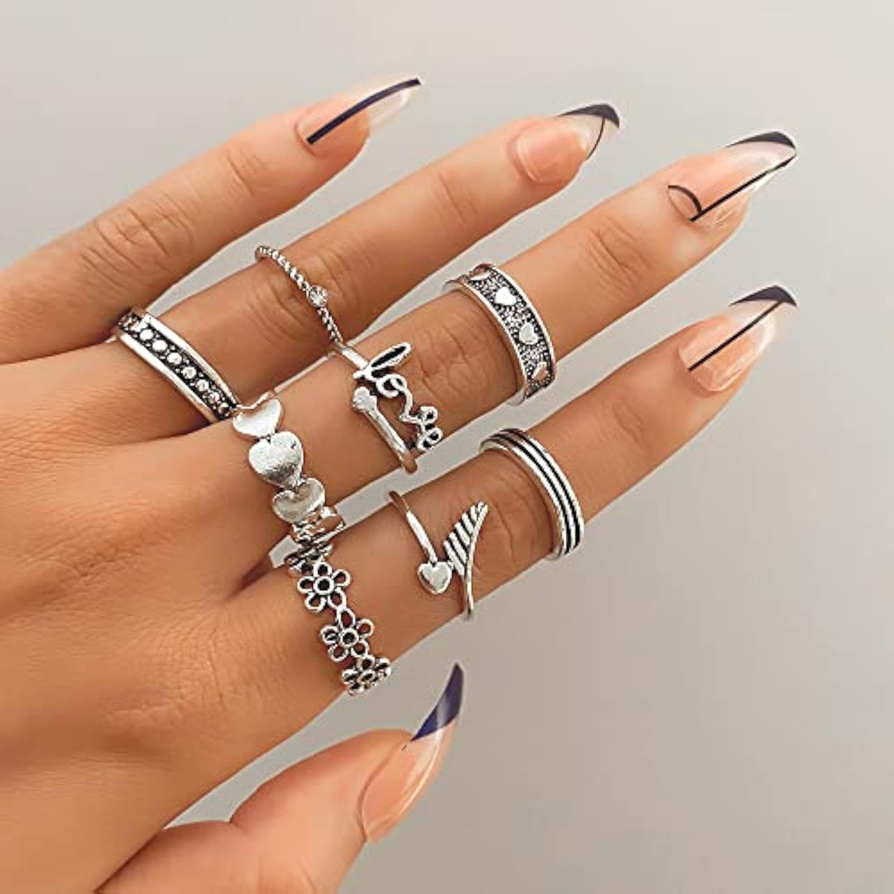 Elevate your look with these chic metal boho midi finger rings set, perfect for adding a touch of style to any outfit.