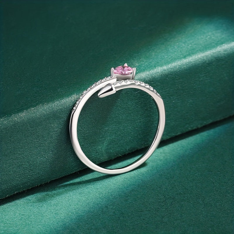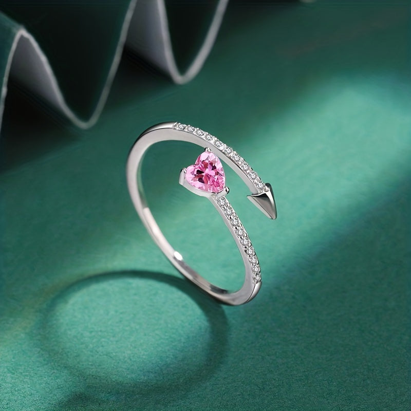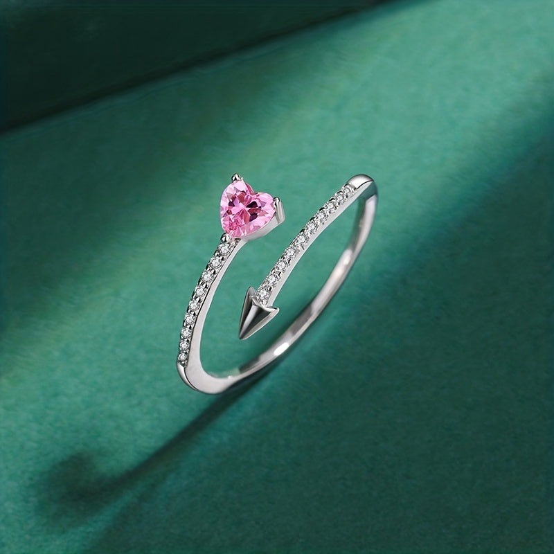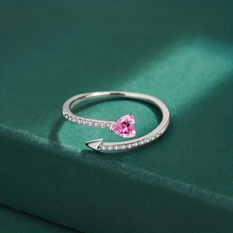 Add a touch of romance with this classic pink love heart arrow ring. Made of 925 sterling silver, this ring is perfect for parties or everyday wear. It also makes a great birthday gift for someone special.