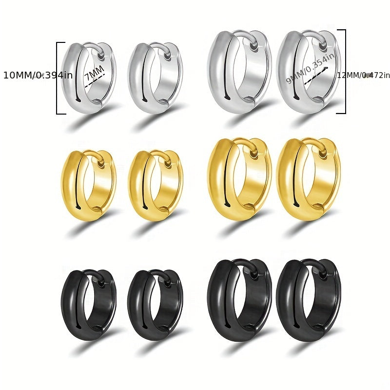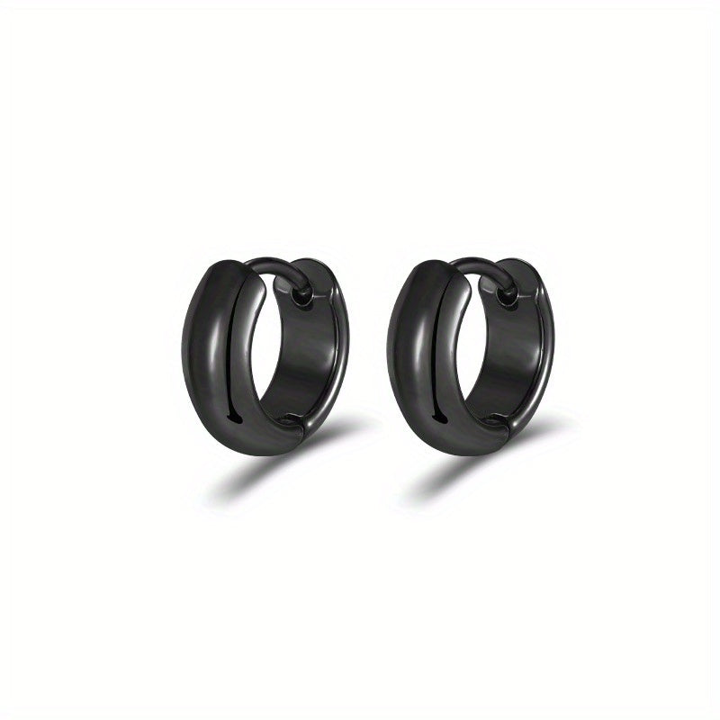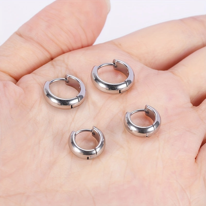 Enhance your style with these round polished titanium steel ear rings suitable for both men and women.