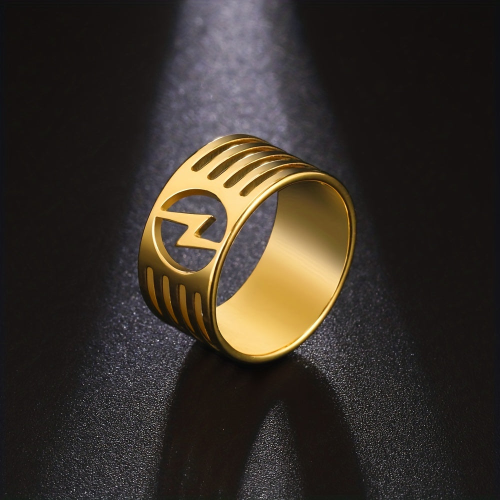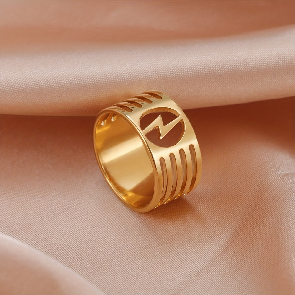 This edgy Punk Hollow Lightning Ring is perfect for men. Made of stainless steel with a golden finish, it makes a great gift for your loved one.