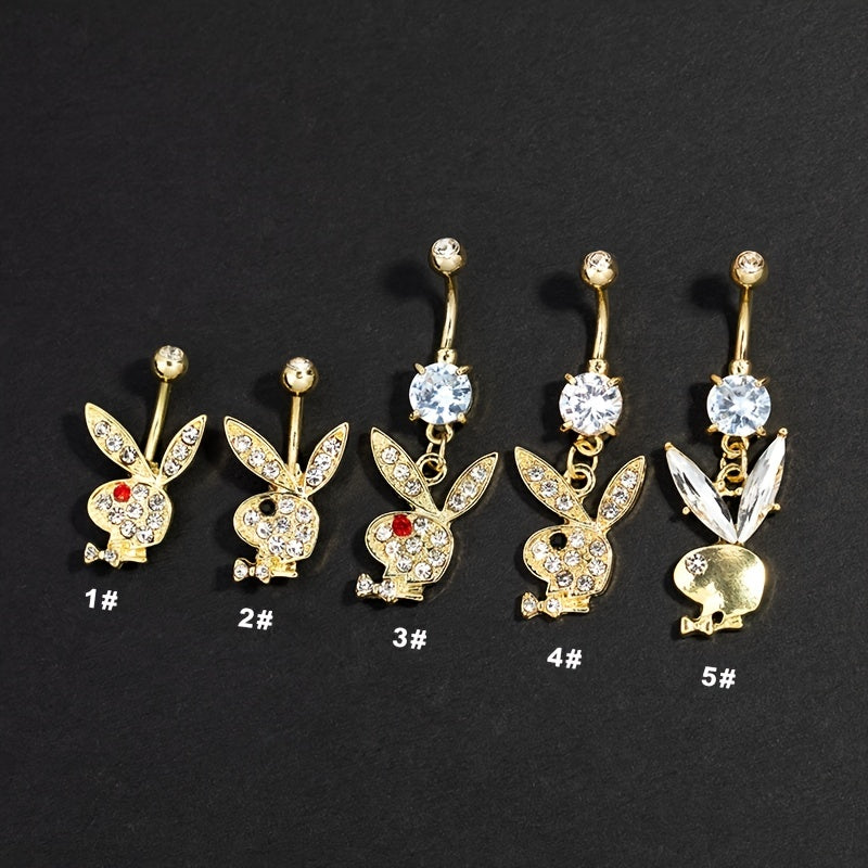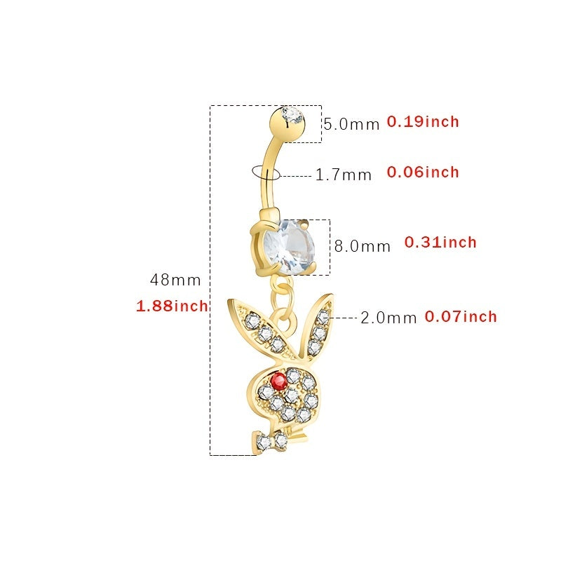 This cute rabbit drop belly button ring features inlaid zircon for a touch of sparkle. Perfect for Easter or as a fun piercing decoration.