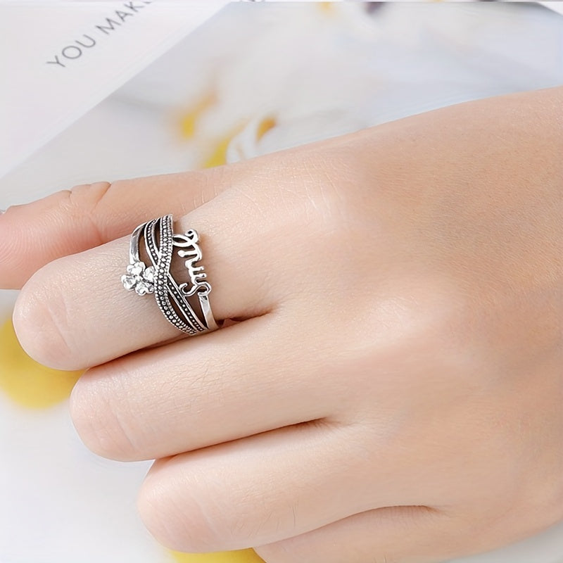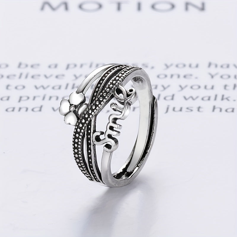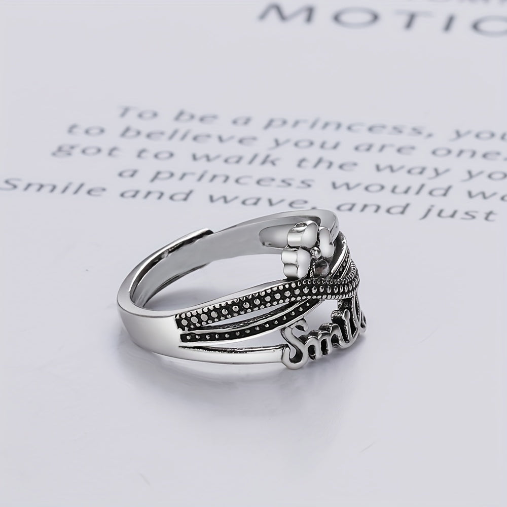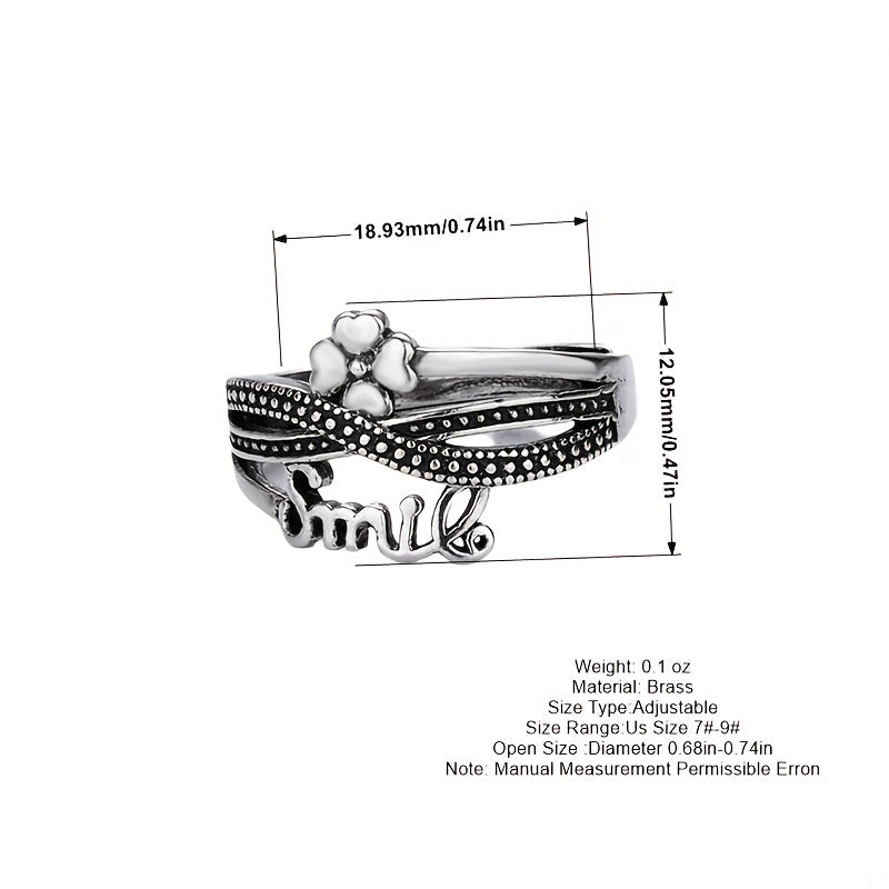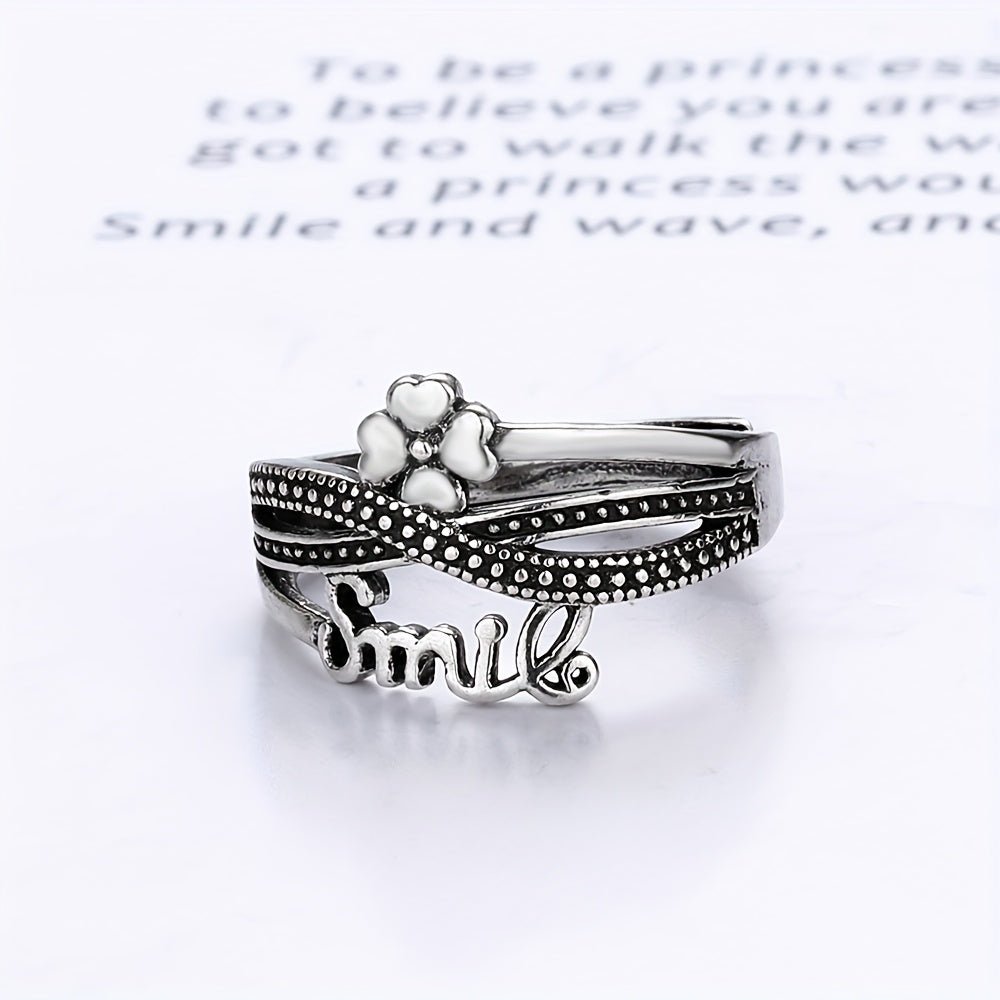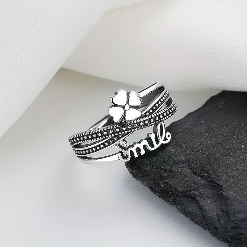 Retro Smile Letter Ring Heart Shaped Clover Ring For Men