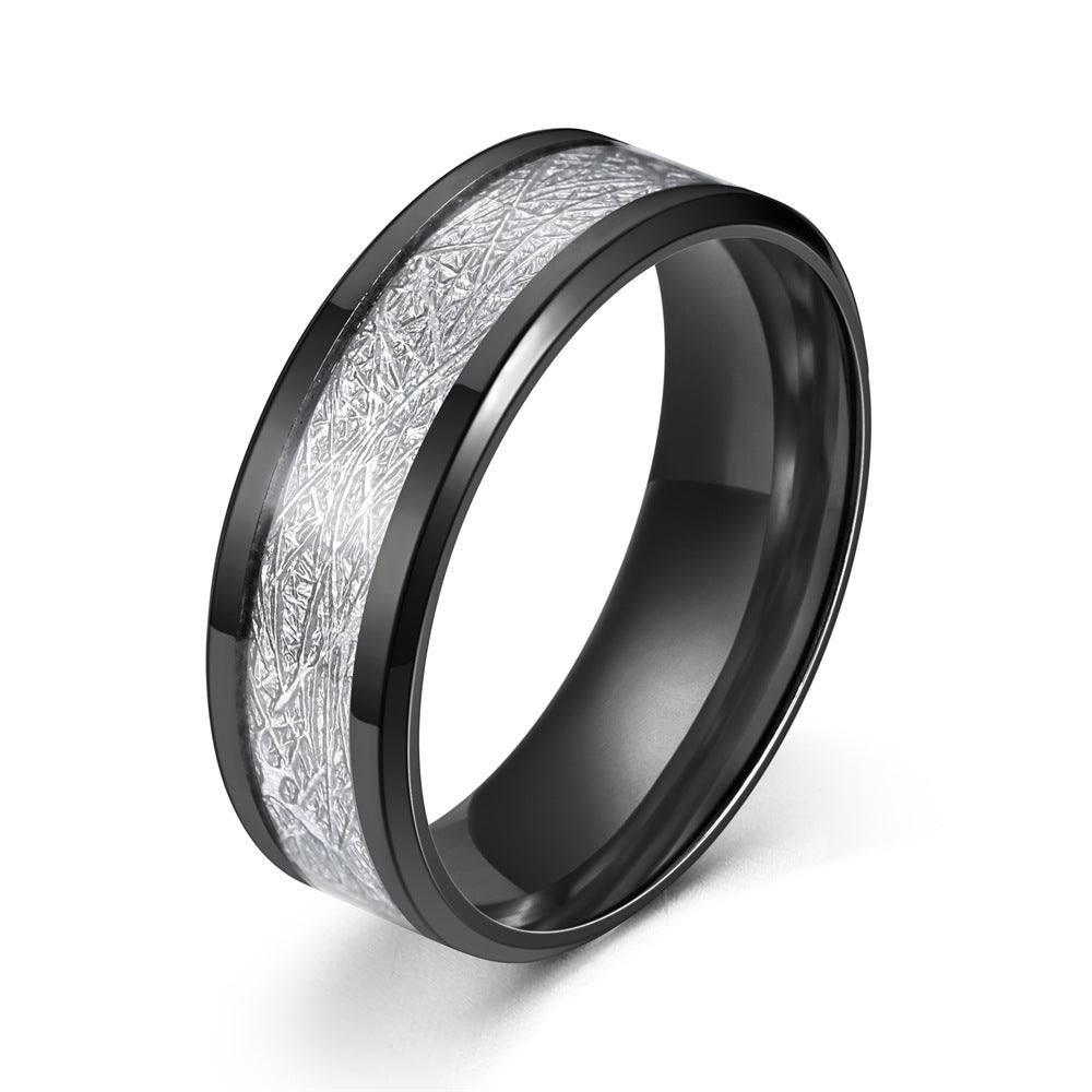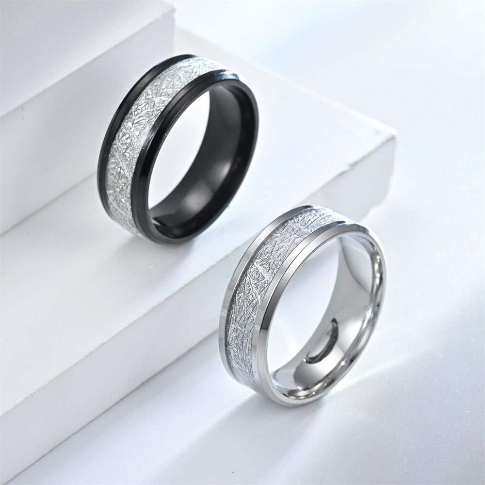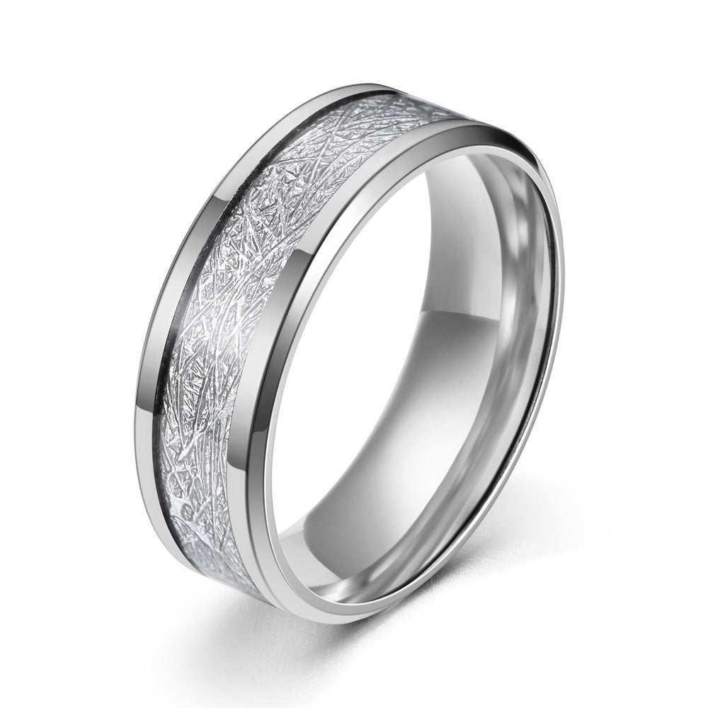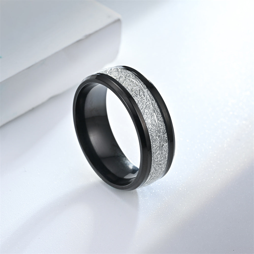 Elegant titanium steel ring with rime silk pattern design, perfect for men.